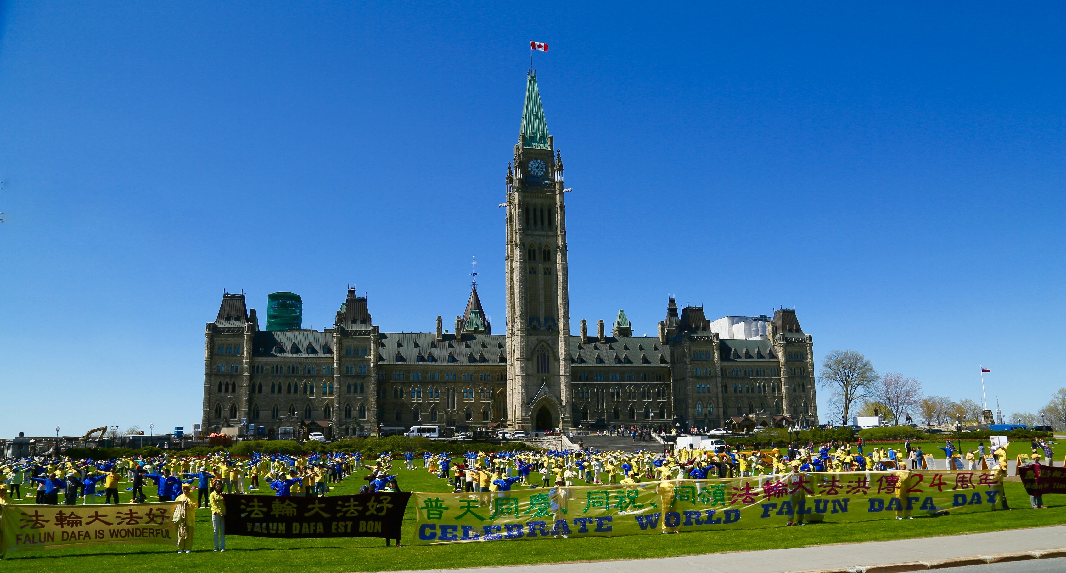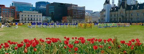 【明慧网二零一六年五月十二日】(明慧记者英梓渥太华报道)世界法轮大法日前夕,二零一六年五月十日,加拿大东部法轮功学员汇聚在首都渥太华国会山前庆祝法轮大法弘传二十四周年。