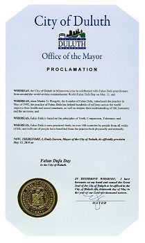 鉴于,明尼苏达州迪庐斯市加入全世界法轮大法修炼者共同庆祝5月13日的世界法轮大法日;