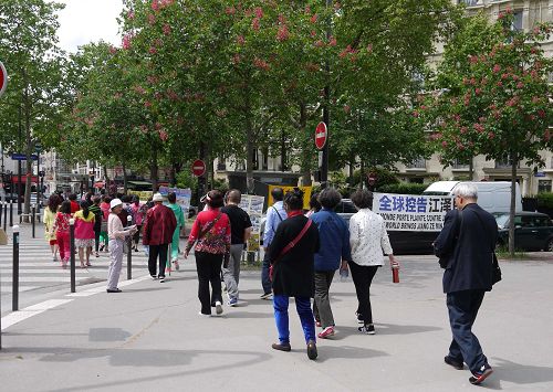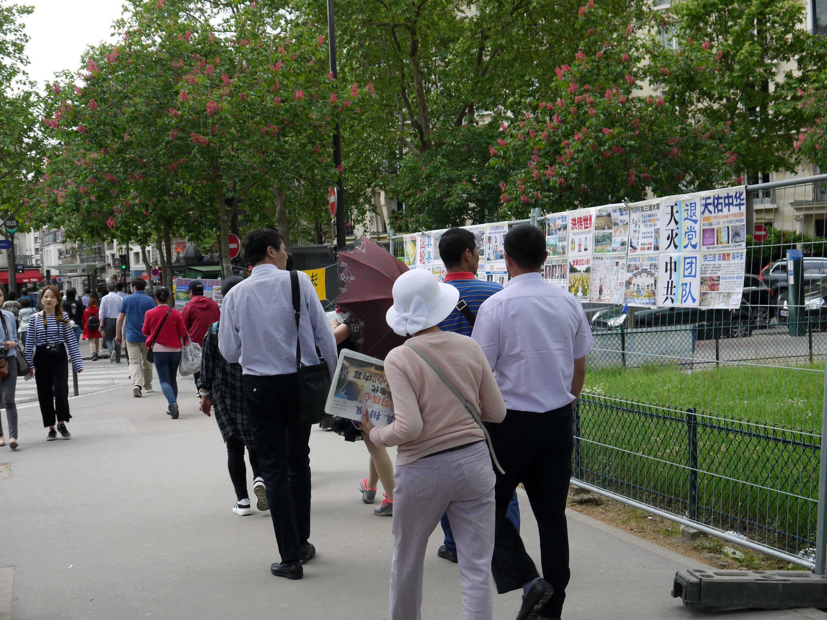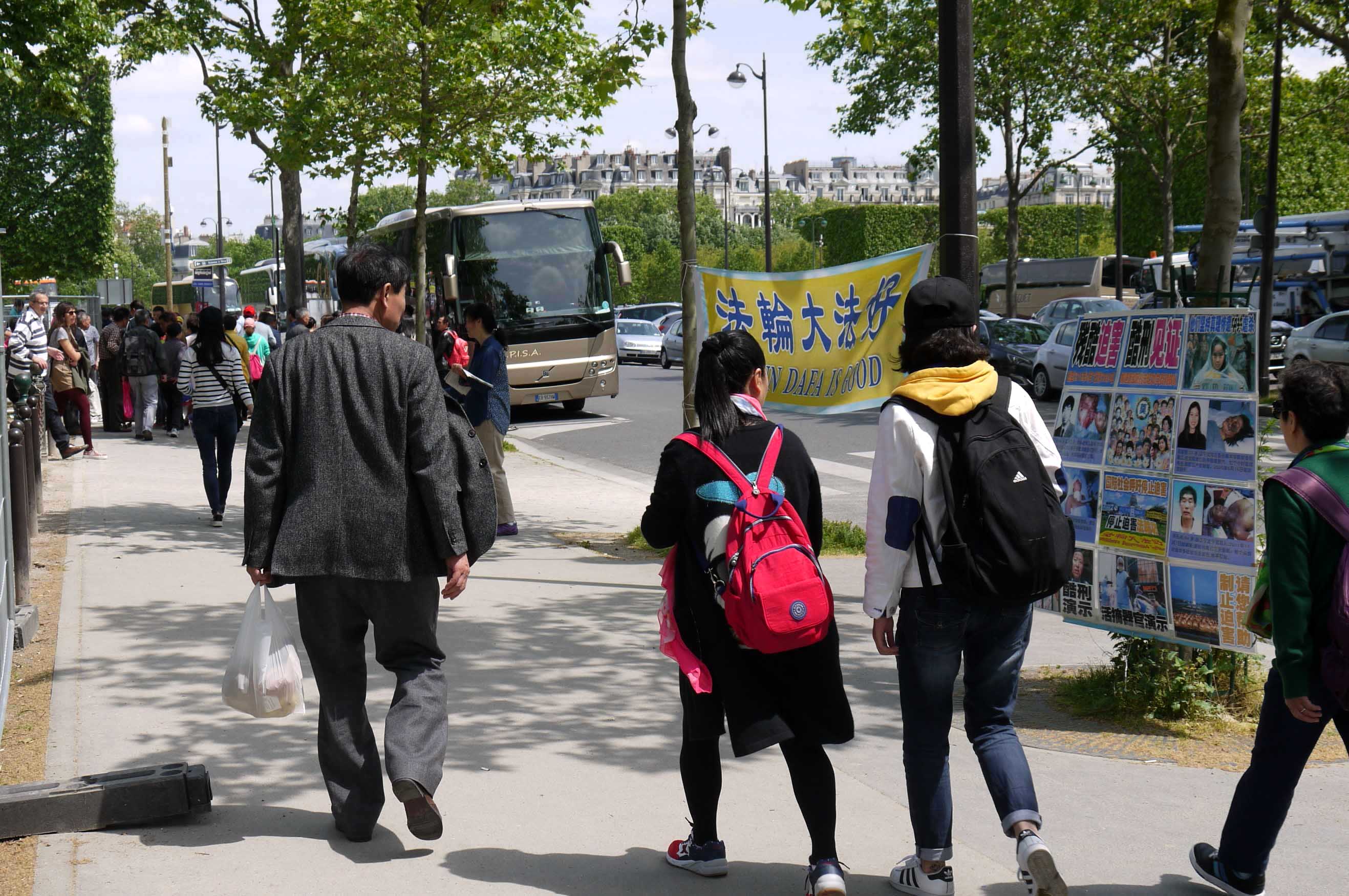 ![]() 图1-4:法轮功学员在巴黎艾菲尔铁塔下设立真相点,每天来观光的大陆游客不会错过。 |