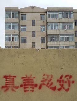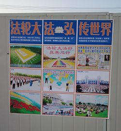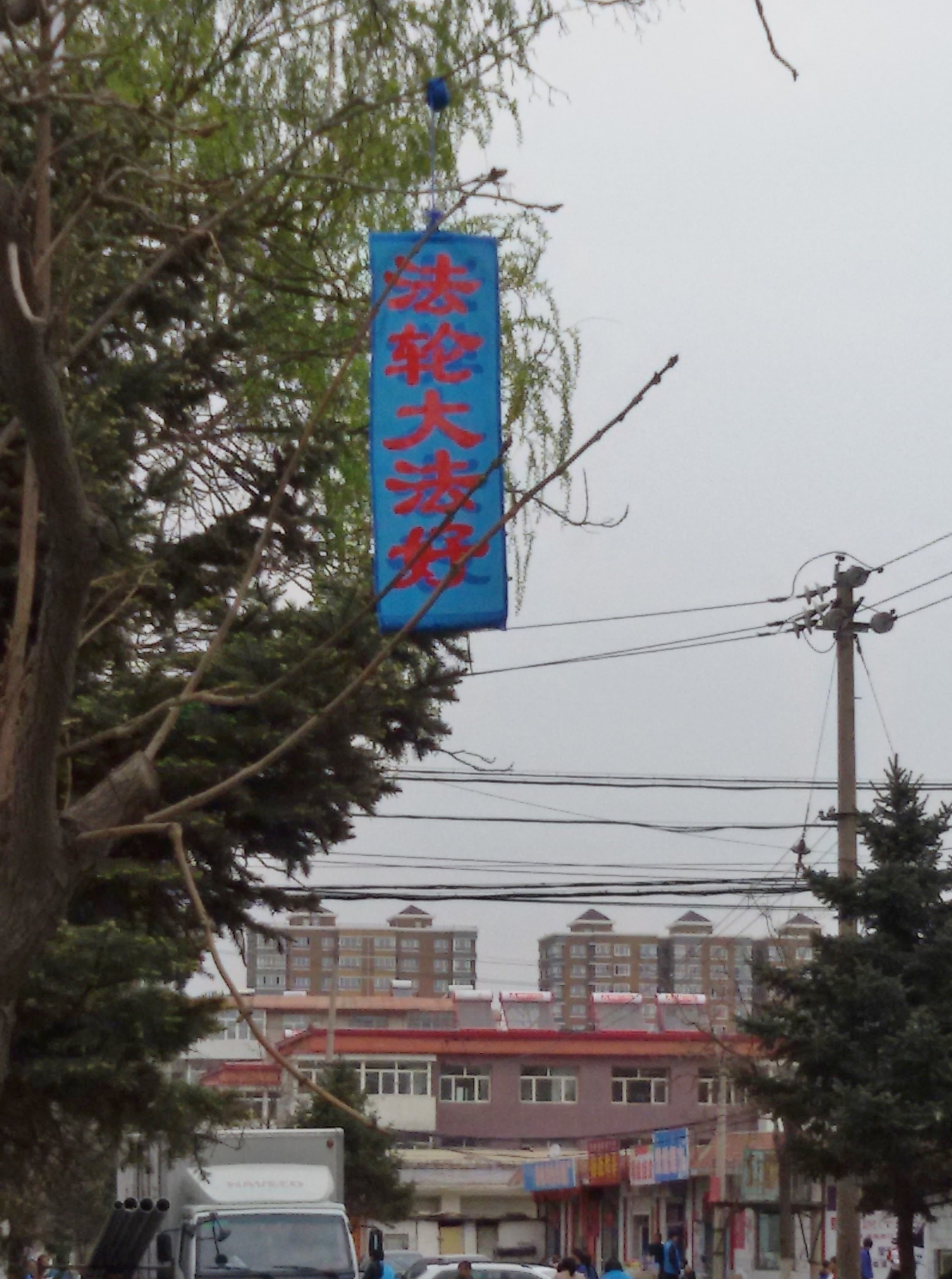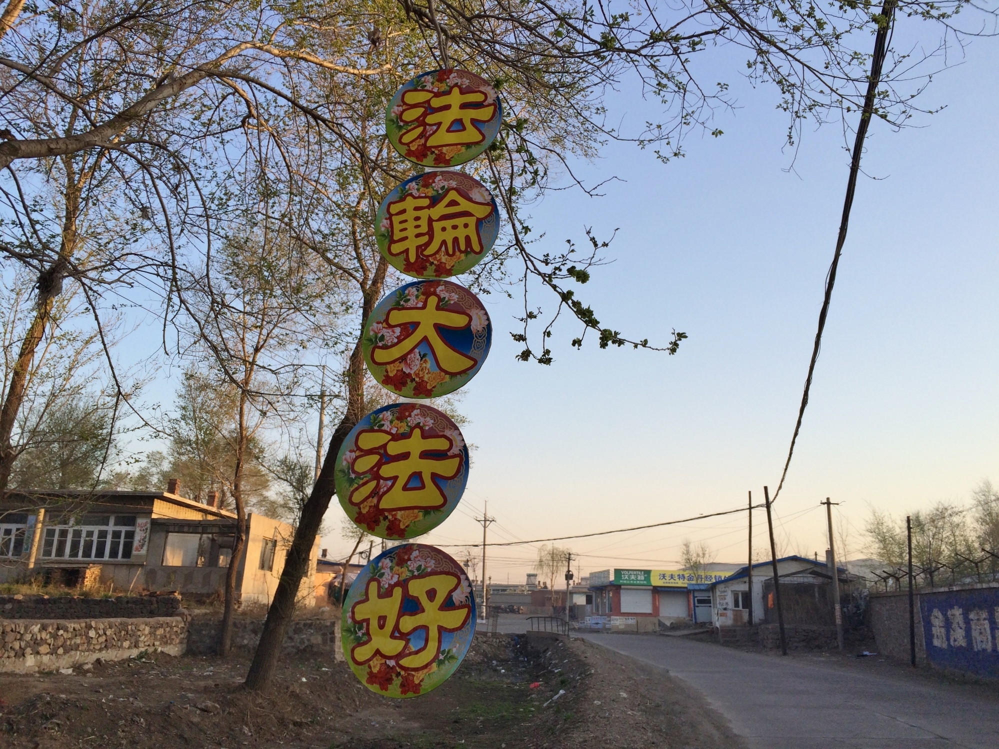 四月二十五日前后,内蒙古某地多处见到“法轮大法好”、“真善忍好”、“全球起诉江泽民”等标语。