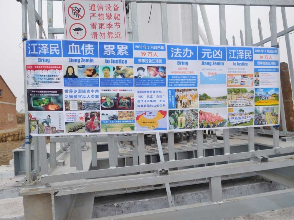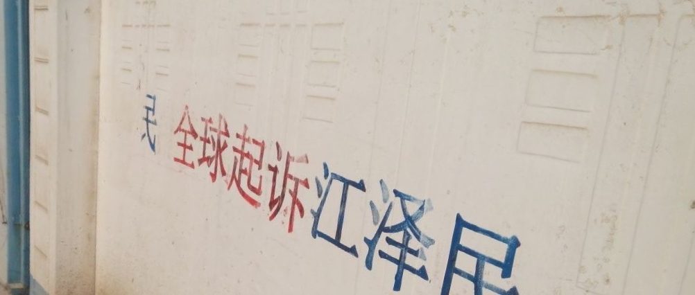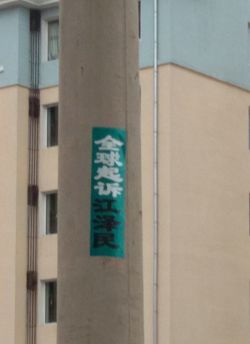 • 四二五前天津出现大型标语“全球起诉江泽民”