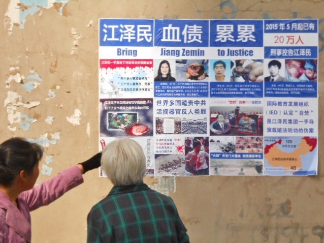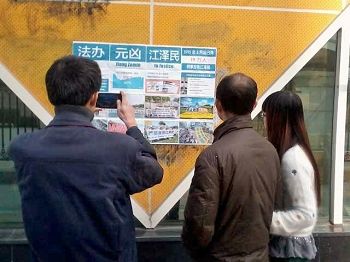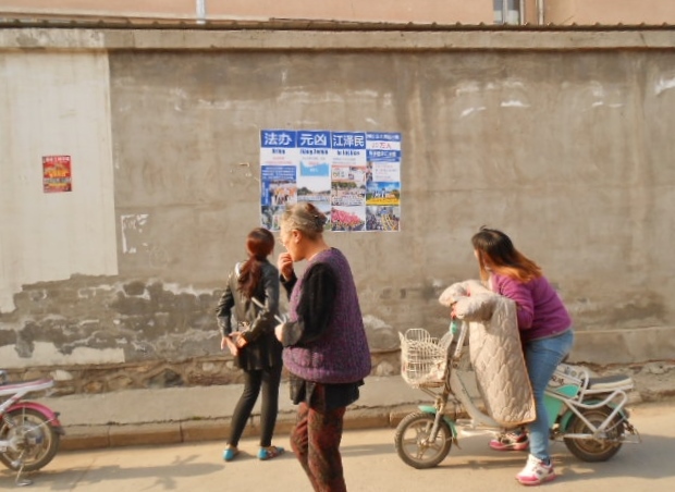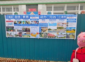 • 河北省张家口涿鹿县街头的诉江展板吸引路人观看