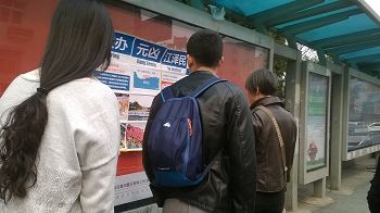 (明慧网通讯员青岛报道)青岛市区车站及其它地方随处可见法轮功真相展板和胶贴,有的已经贴很长时间了,市民们都说:“我们知道法轮大法好,法办江泽民是早晚的事。”