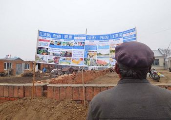 河北省张家口涿鹿县街头的诉江展板吸引路人观看