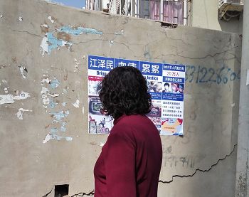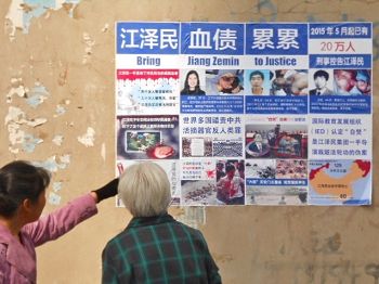 两个月前,辽宁本溪市的法轮功学员到农村张贴真相图片,人们好奇的前来围观。