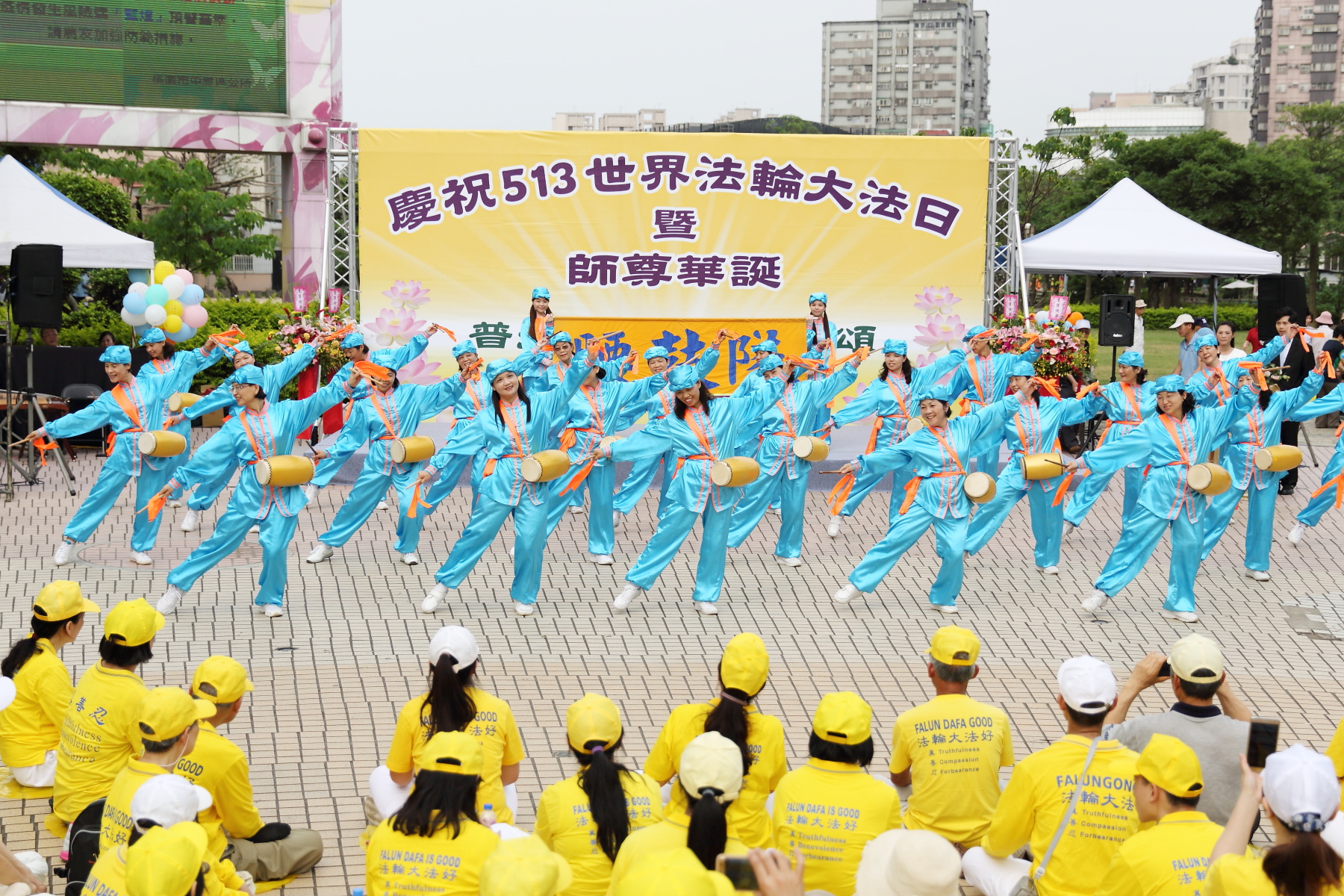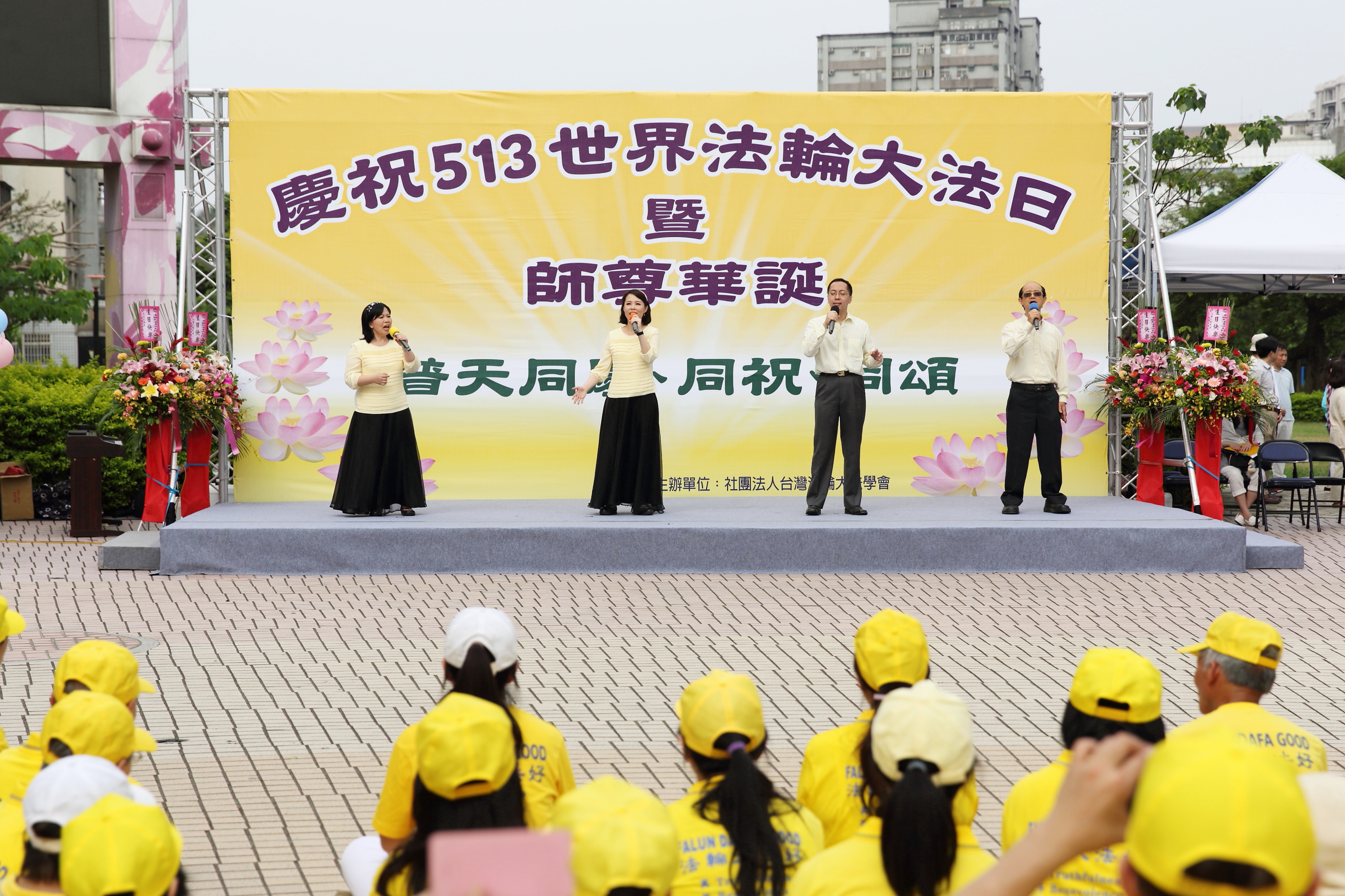 今年是法轮大法开传二十四周年纪念日、第十七届“世界法轮大法日”,也是法轮大法创始人李洪志先生六十五岁华诞。台湾大桃园地区的约六、七百名学员,于五月七日在中坜区地标之一的中正公园,提前举办庆祝大会。
