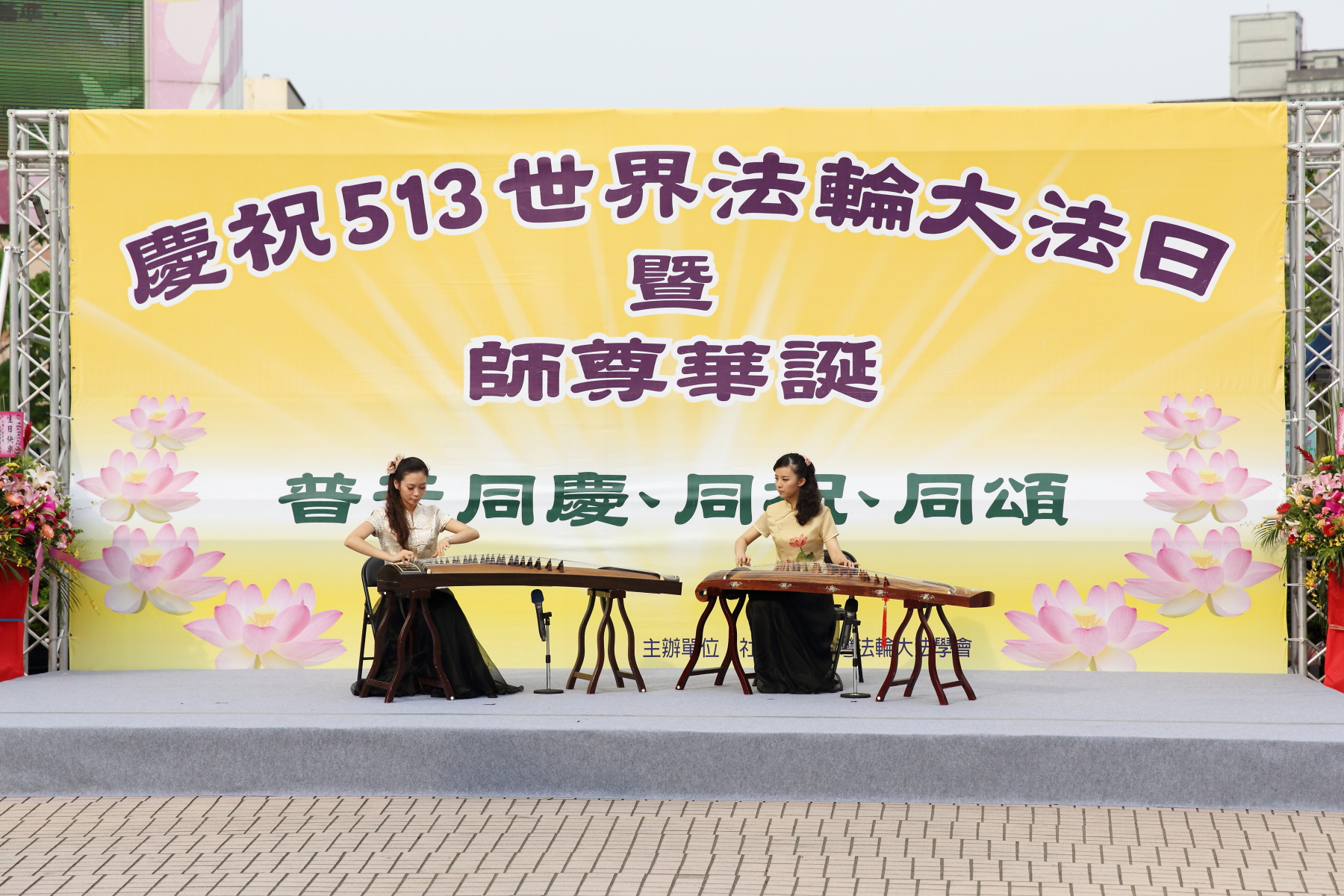 图4:天国乐团吹奏“法轮大法好”、“法鼓法号震十方”及“谢谢师父”揭开序幕。