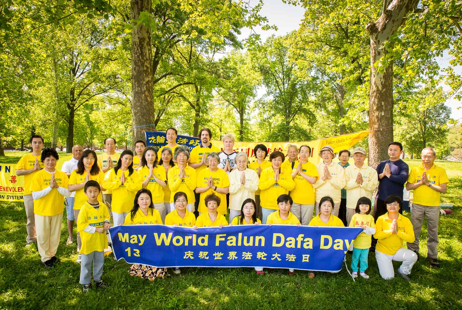 图1:圣路易学员合影恭祝师尊生日快乐,庆祝法轮大法日