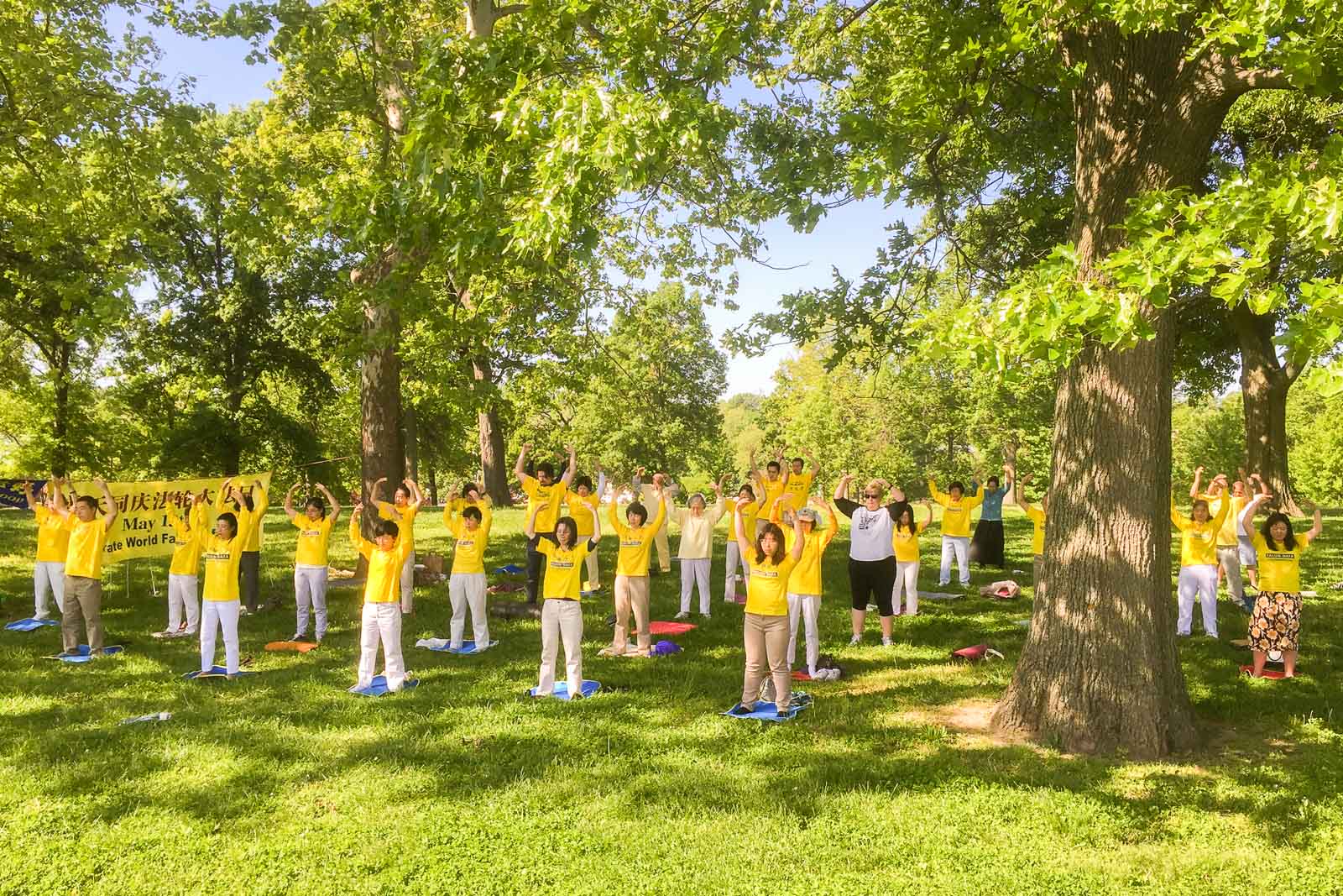 【明慧网二零一六年五月九日】二零一六年五月七日,美国密苏里州法轮功学员在位于圣路易森林公园的炼功点集体炼功,庆祝即将到来的五月十三日世界法轮大法日,及法轮大法弘传世界二十四周年。
