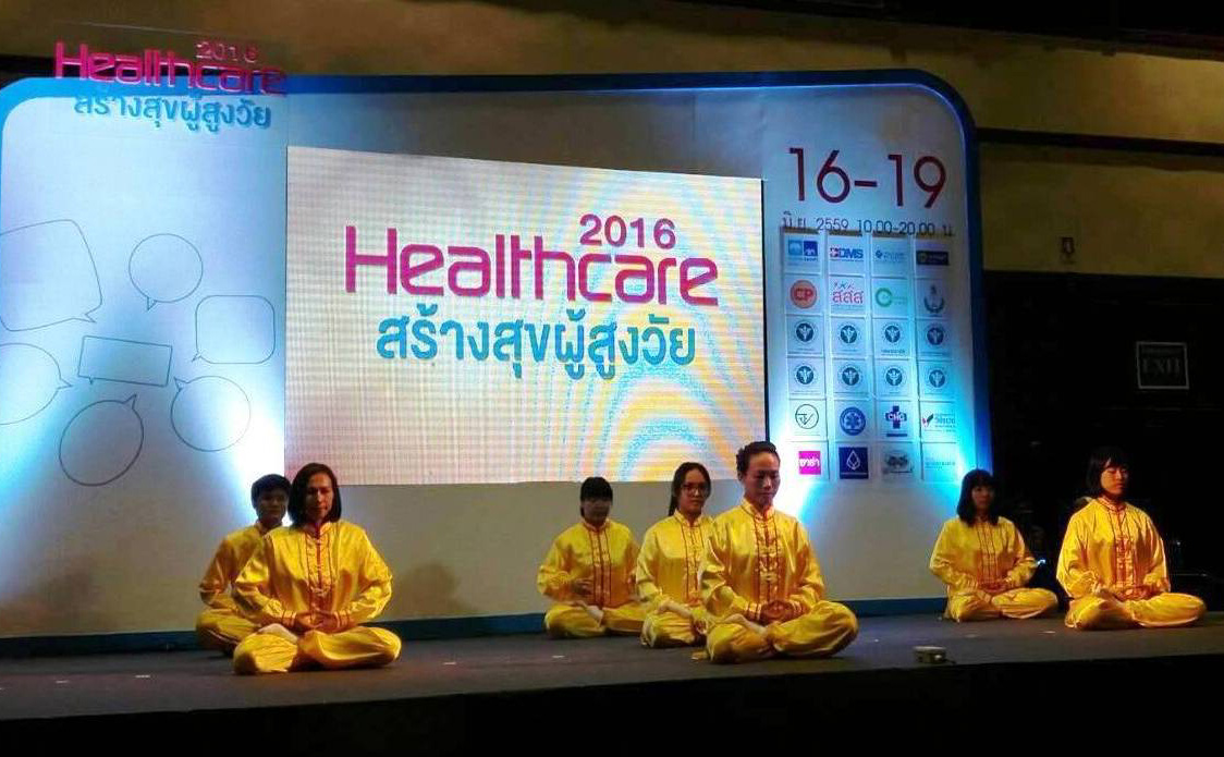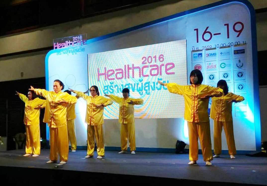 ![]() 图4-5:二零一六年泰国健康博览会上,法轮功学员演示五套功法。 |