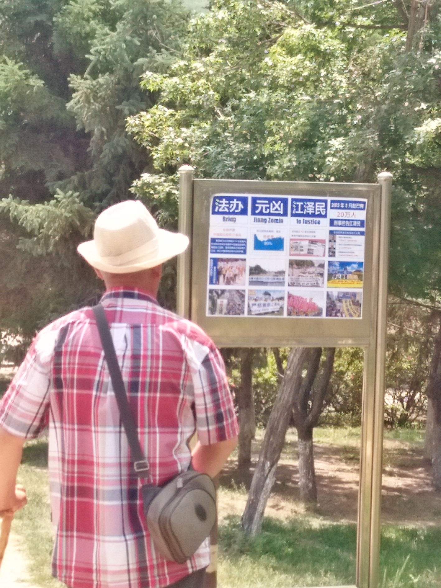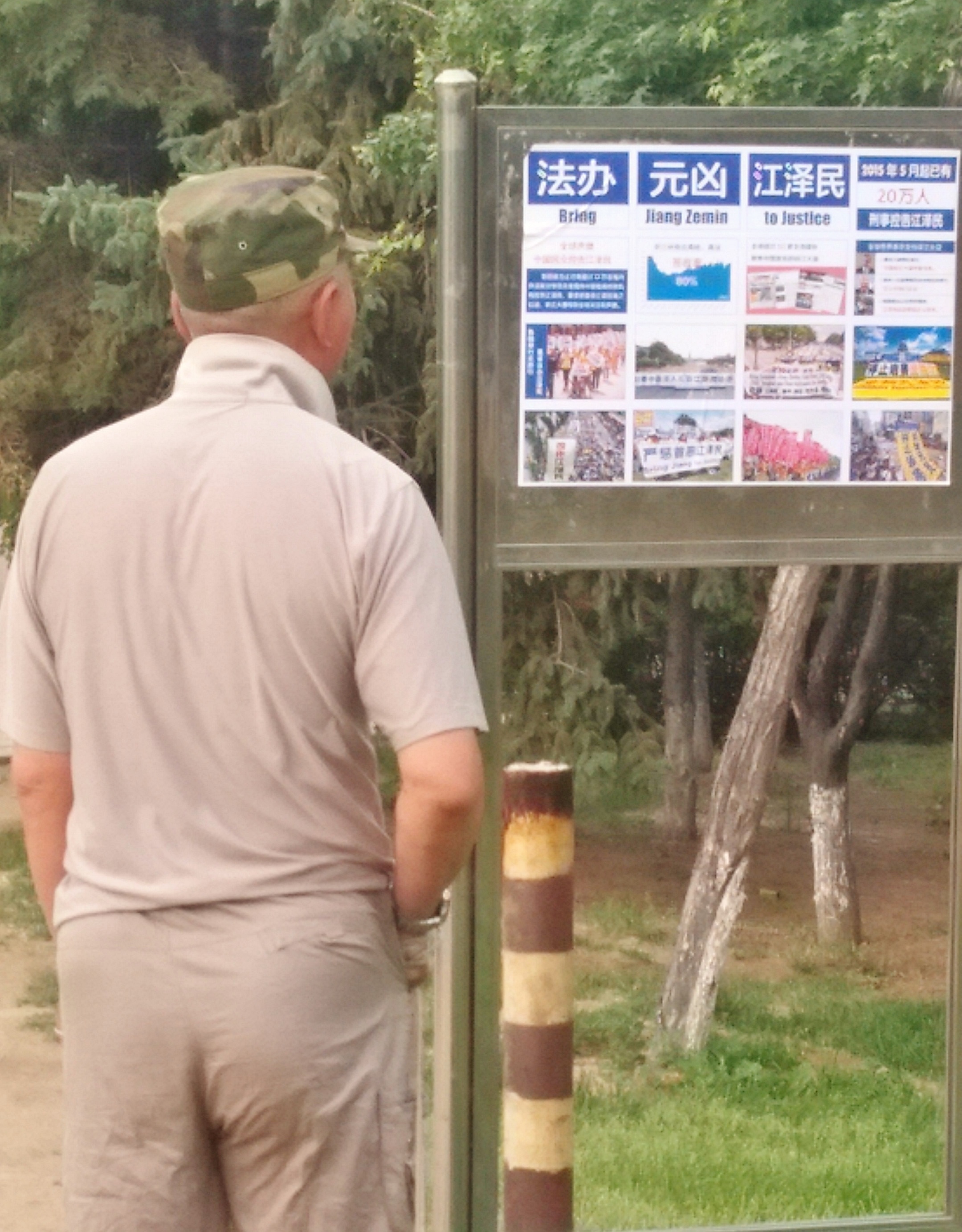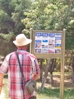 ![]() 游客观看展板,了解法轮功真相 |