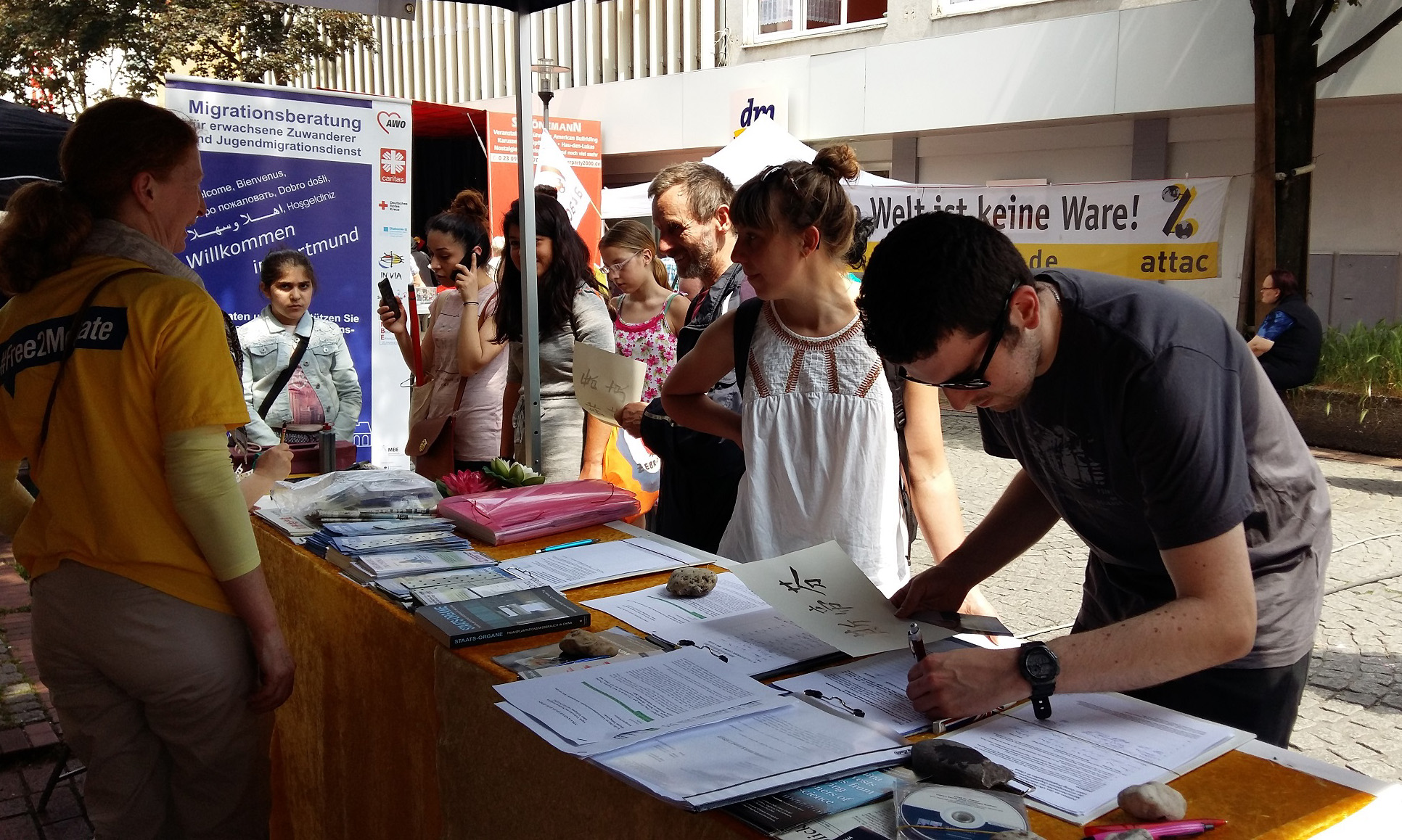 ![]() 图3:德国国际文化周上,民众签名支持法轮功学员反迫害 |