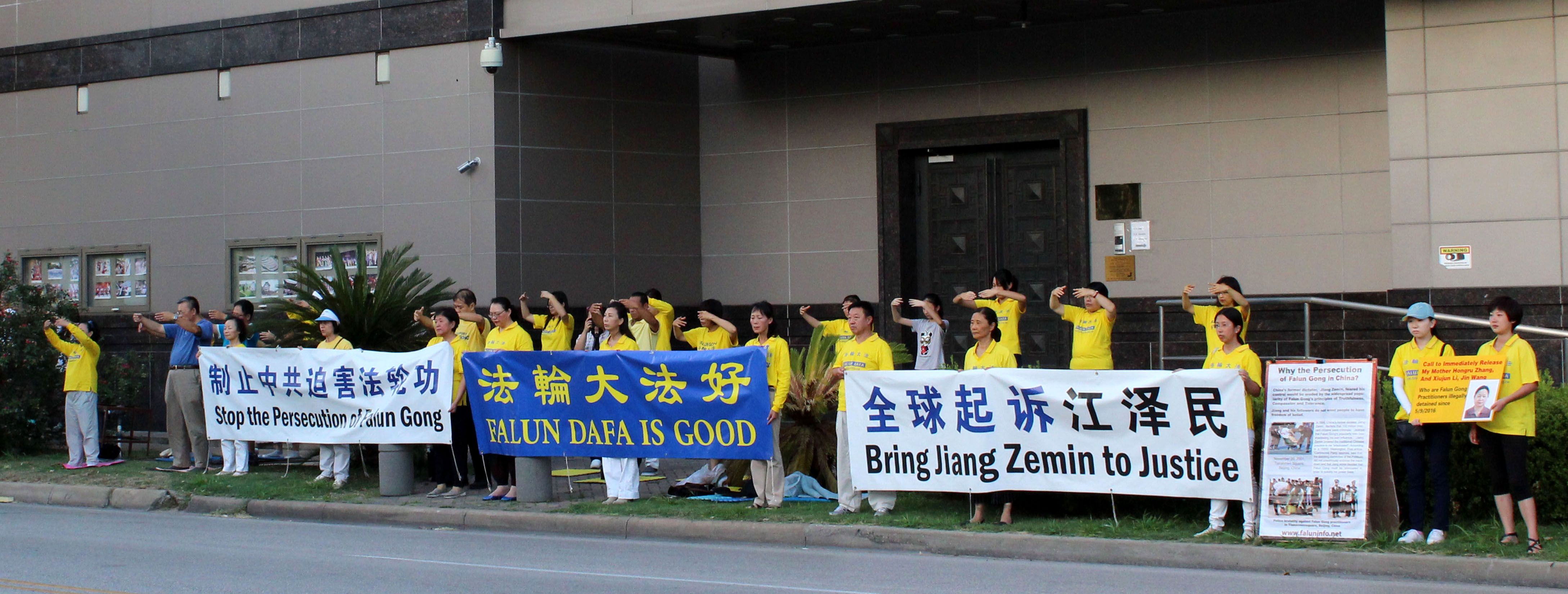 休士顿学员中领馆前炼功