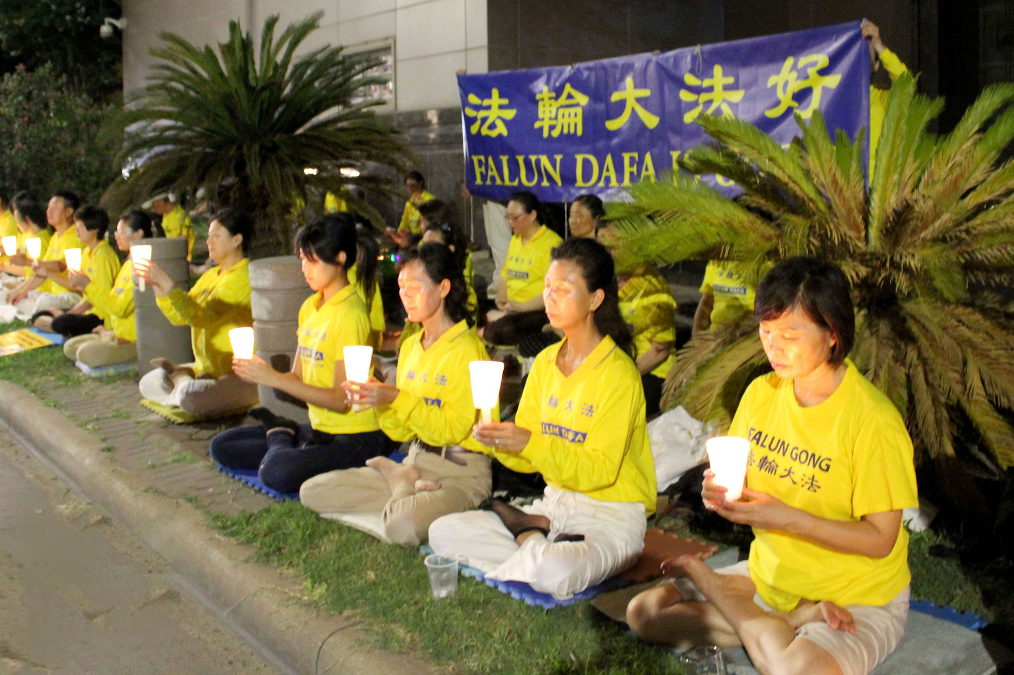 法轮功学员中领馆前烛光悼念