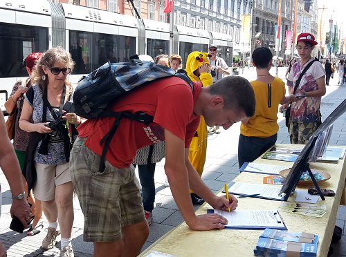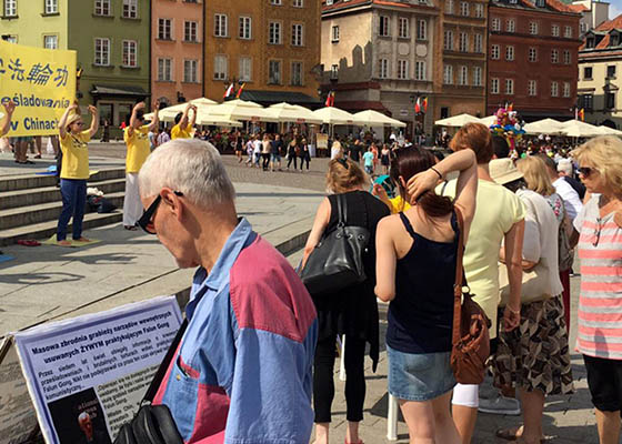 波兰法轮功学员粗略统计有近万人前来了解法轮功真相,大家纷纷在反迫害证签簿上签名,对学习法轮功功法更是热情高涨,受到年轻人的极大的欢迎。