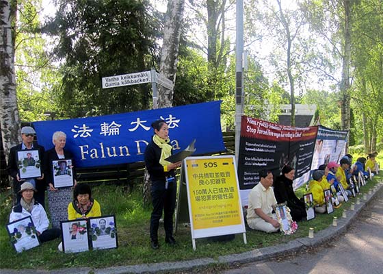 为揭露中共迫害,制止暴行,法轮功学员于2016年7月20日在芬兰首都赫尔辛基的中使馆前举办了抗议活动和烛光夜悼。