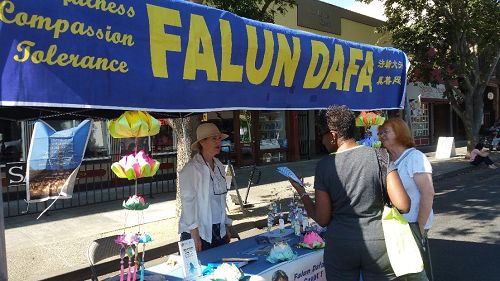 Woodland市是一个历史悠久的城市,是Yolo郡的市政所在地,在西沙加缅度,距离加州大学戴维斯分校只有十几分钟车程。这天当地的居民和周边城市居民络绎不绝。在各个展台中,法轮功展台格外引人注目。