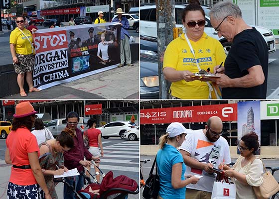 在加拿大总理访华前,多伦多法轮功学员举办征签活动,揭露中共迫害法轮功的罪行,各界民众签名支持反迫害。