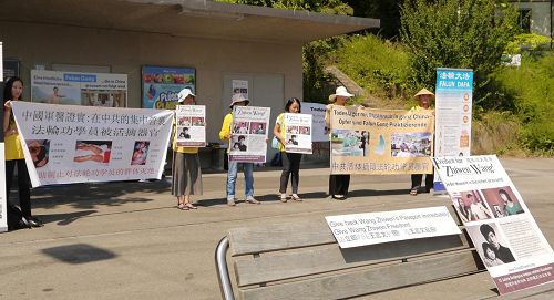 当天的活动地点在车站旁,很多路人及在公车上的乘客纷纷关注学员打出的横幅,横幅的内容除了介绍王治文的经历,也向人们介绍法轮功是什么,并揭露中共对法轮功学员的迫害以及其活摘法轮功学员器官的罪行。