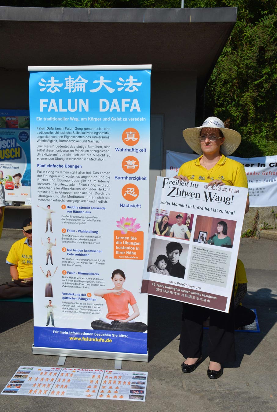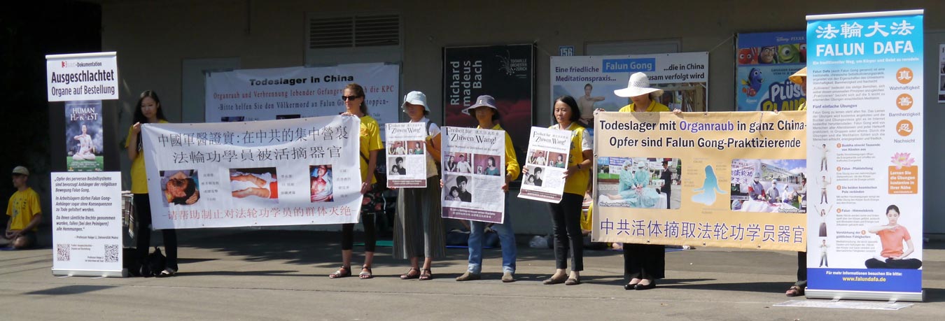 ![]() 图1-2:法轮功学员苏黎世抗议中共因王治文坚持信仰“真善忍”而阻挠其出境与女儿团聚,并揭露中共迫害法轮功,甚至活摘法轮功学员器官的罪行。 |