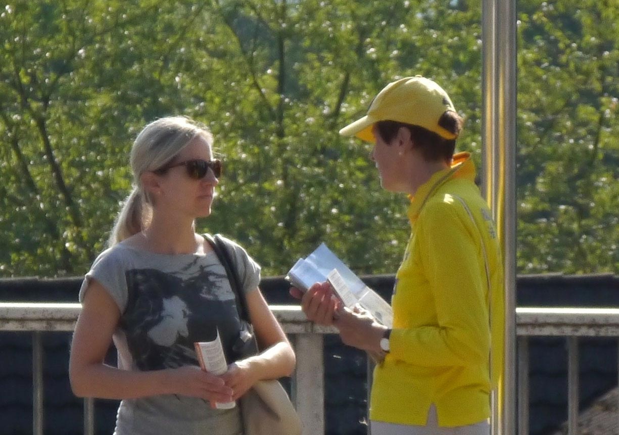 米里亚姆(Mirjam)带着两个孩子路过,她看过王治文的经历以及中共迫害法轮功学员的照片后谈到:“太可怕了,在(中国)发生的这一切,我对此一无所知,实在是太严重了。我要了解更多的相关讯息。”在学员的告诉她中共活摘法轮功学员器官的罪行后,她特意拍下了影片“活摘”的介绍,打算去观看:“人们应该了解正在发生什么,这非常重要。我会了解更多的讯息,或许我可以提供些帮助,或者让更多人知道。”