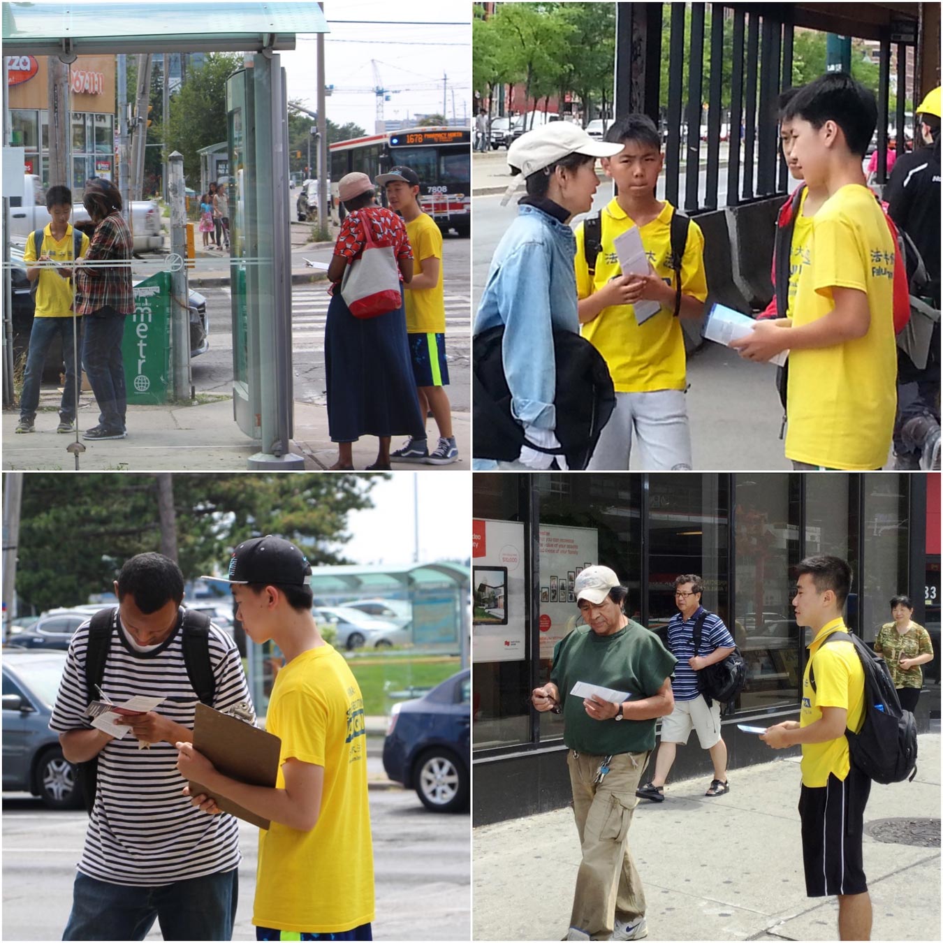 图4:学生们到唐人街讲真相,到各大路口征签。