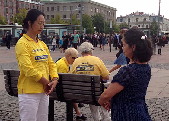 瑞典游客支持法轮功 谴中共迫害
