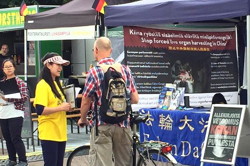 很多芬兰人听到独立调查员的最新报告,中共大规模进行活摘器官,器官来源绝大部份是法轮功学员,并且有七百家医院参与了活摘器官的罪行,民众都毫不犹豫在征签表上签名。纷纷表示这“太可怕了”,“太恐怖了”,“太邪恶了”。