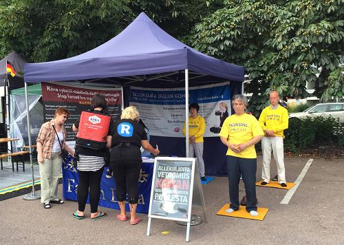 【明慧网二零一六年八月三日】二零一六年七月二十八日至三十一日,芬兰法轮功学员参加了一年一度的KOTKA海洋节活动,揭露中共迫害法轮功,活摘法轮功学员器官的罪行,并征集支持“法办江泽民”“制止活摘器官”的签名。
