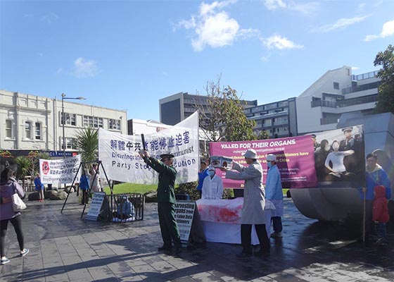 八月六日,新西兰法轮功学员在奥克兰繁荣商业区的纽马克特公园举办“停止迫害法轮功,揭露中共活摘器官罪行”的反酷刑展活动。