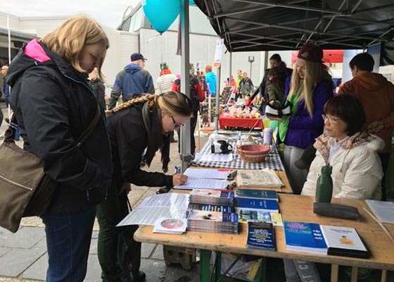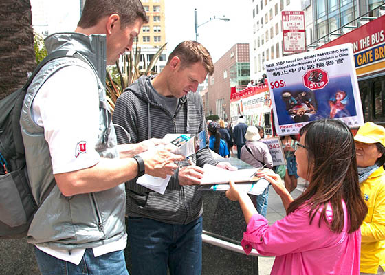 旧金山法轮功学员利用双休日走上街头,向民众征集签名,呼吁制止中共活体摘取法轮功学员器官的罪行,获得民众支持。