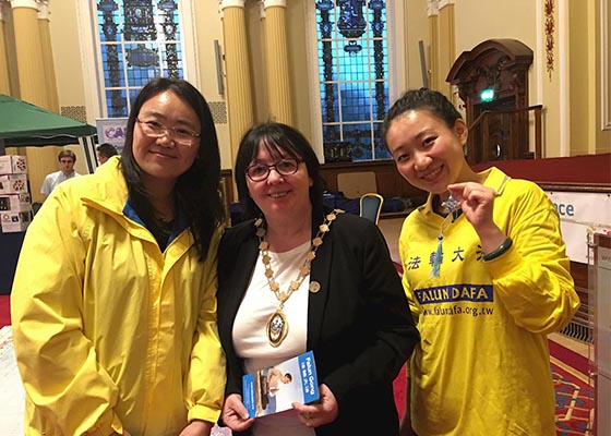 法轮功学员受邀参加了在北爱尔兰首府贝尔法斯特市政厅举办的青年和平日活动,人们了解真相并签名反迫害。