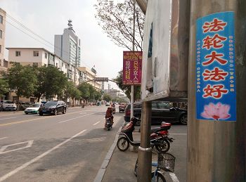 武汉法轮功学员悬挂条幅和张贴标语