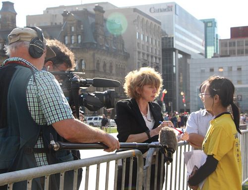 ![]() 图1、2:加拿大广播公司电视采访法轮功学员。 |