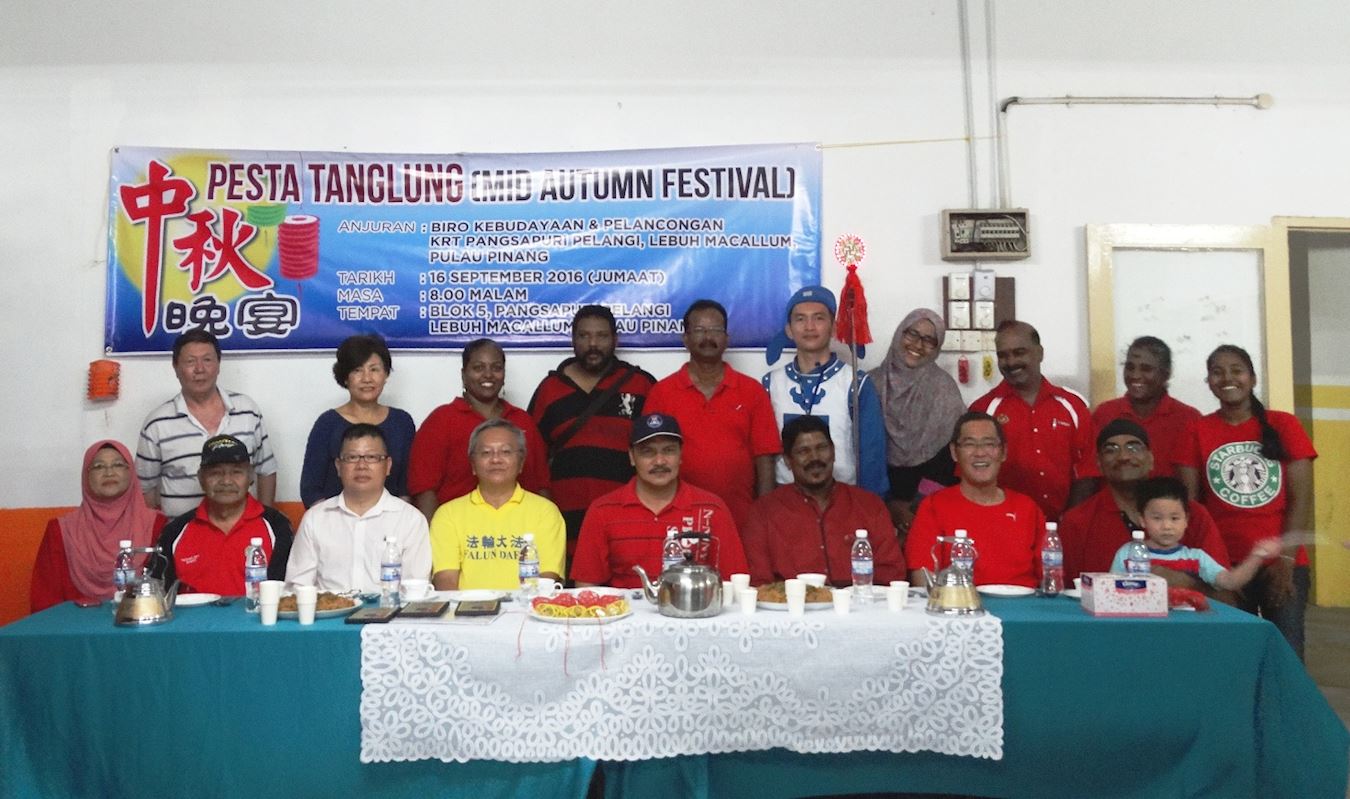 九月十六日,法轮功团体应邀出席了“槟城五条路彩虹公寓睦邻计划文化旅游局”(Biro Kebudayaan & Pelancongan Kawasan Rukun Tetangga (KRT) Pangsapuri Pelangi, Lebuh Macallum, Pulau Pinang)所举办的庆中秋游行活动。这是“彩虹公寓睦邻计划中心”成立二十年来第一次庆中秋活动,请来了法轮功壮观的游行队伍,使许多民众为之感动。据槟城五条路彩虹公寓睦邻计划中心主席Mohamad Rais透露,这一区的住户覆盖面有90%,其中华人居民占了80%。