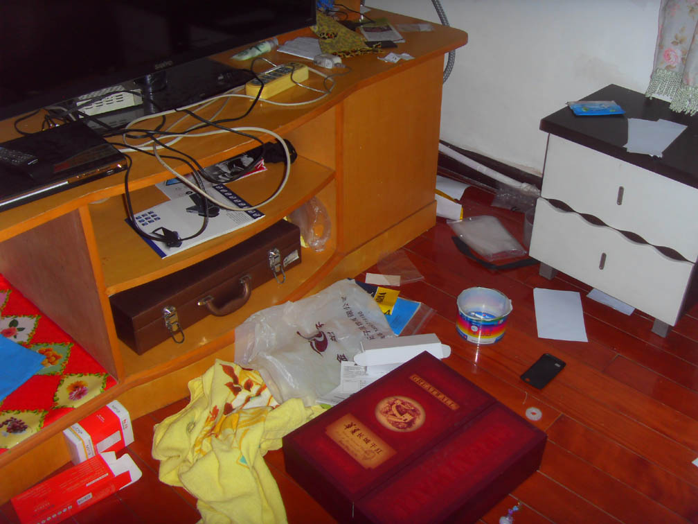 ![]() 图1~4:二零一五年六月,沈阳市集贤派出所警察将顾英华女士的家翻得一片狼藉,抢走顾英华的私人财物:人民币一千元左右、电脑、打印机和法轮大法书籍。 |