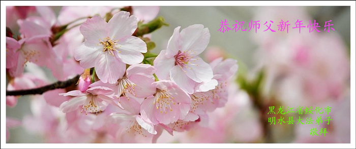 尊敬的师父您好!在十多年的正法修炼路上,弟子遇到很多困难,但是在师父的慈悲呵护与同修的帮助下,弟子还算顺利的走到了今天,没有出现太大的问题。今后的修炼还要继续努力,不辜负师父的期望。再次恭祝师父新年快乐!