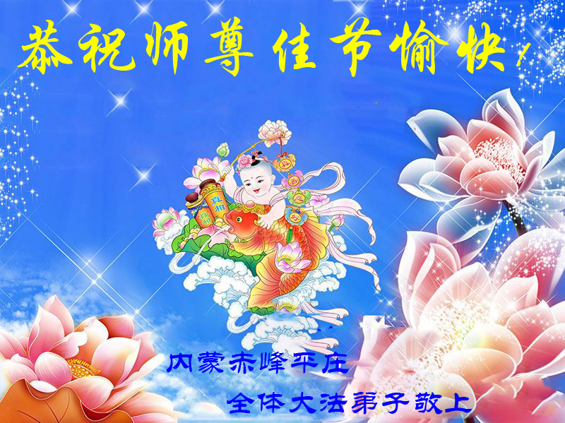 我代表我们七人学法小组恭祝师父节日快乐!我们一定努力多学法,向内找、修自己,让师父少为我们操心。谢谢师父!