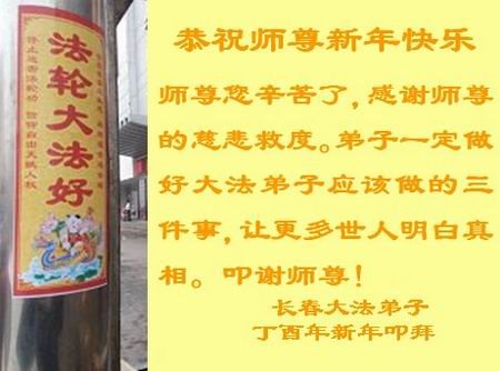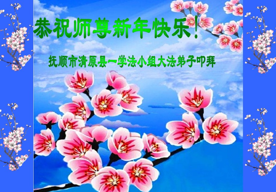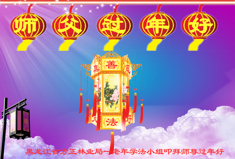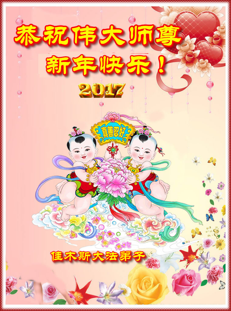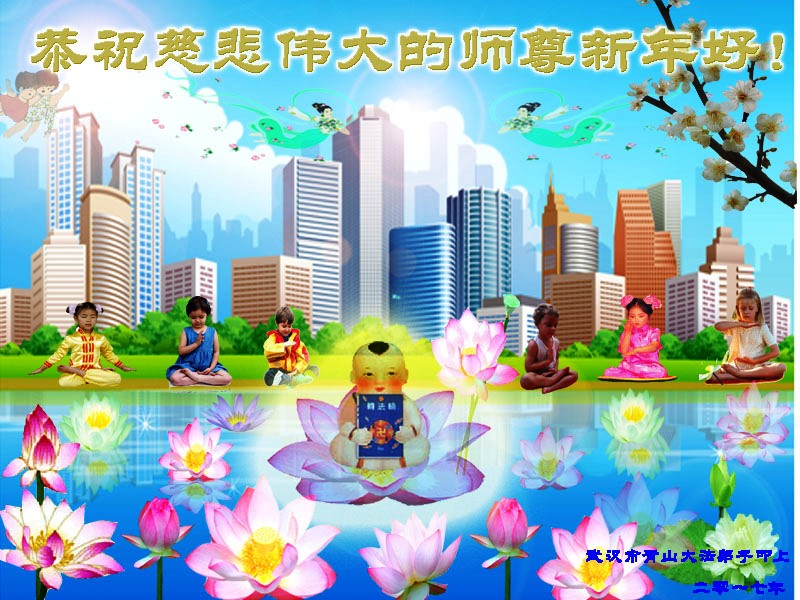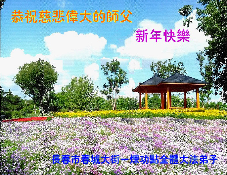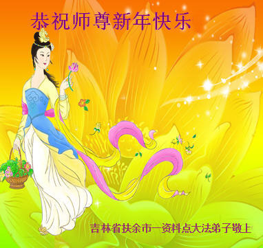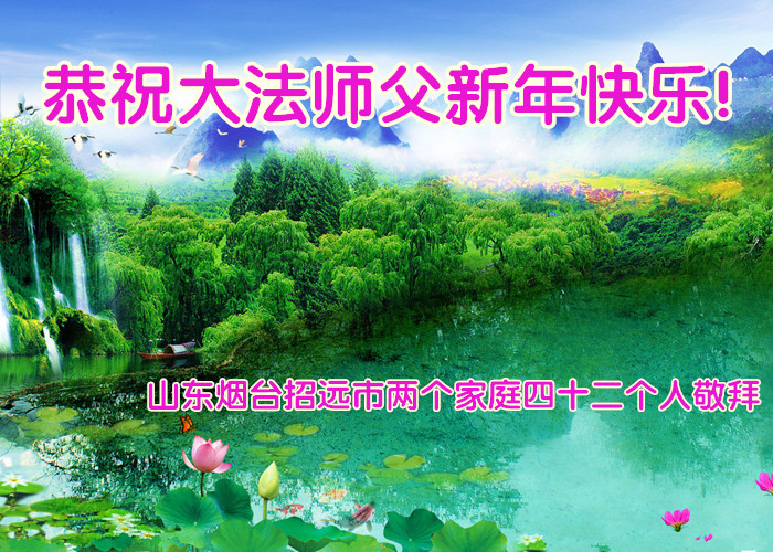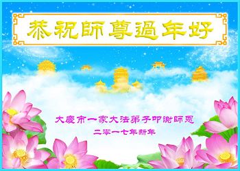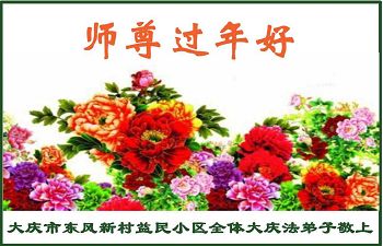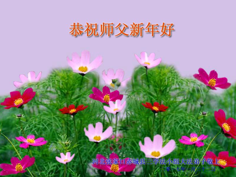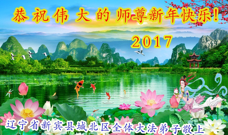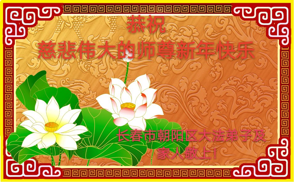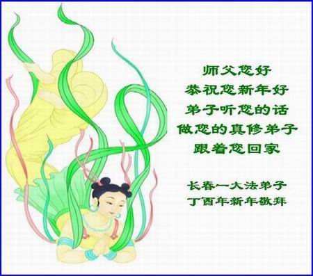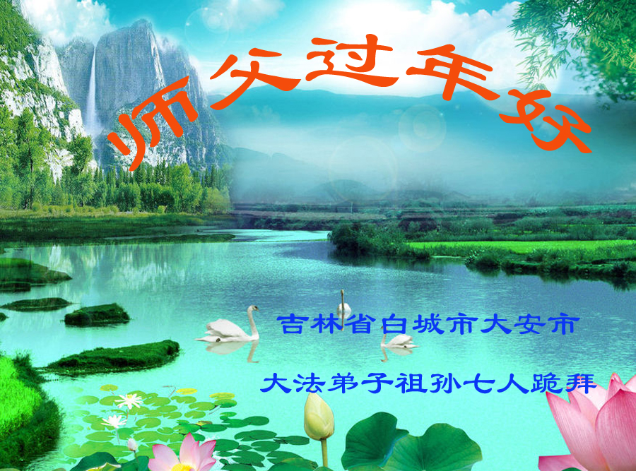 值此丁酉年新年之际,来自四川遂宁、辽宁抚顺、吉林长春、山东省威海、河北石家庄、吉林德惠、四川成都、山东招远、辽宁鞍山、湖北武汉、吉林舒兰、辽宁义县、重庆开州、湖北天门、胜利油田等七省十五地的资料点的大法弟子给慈悲伟大的李洪志师尊拜年!