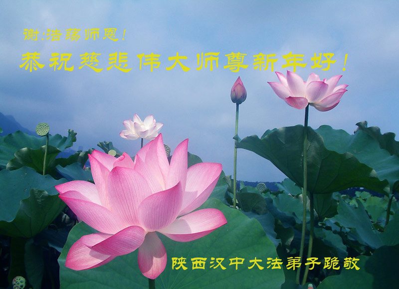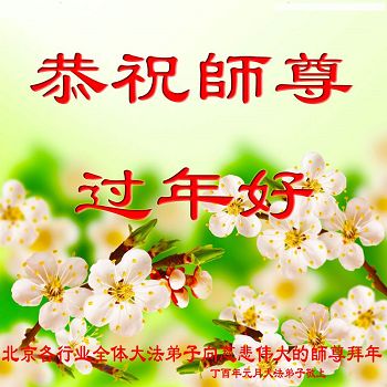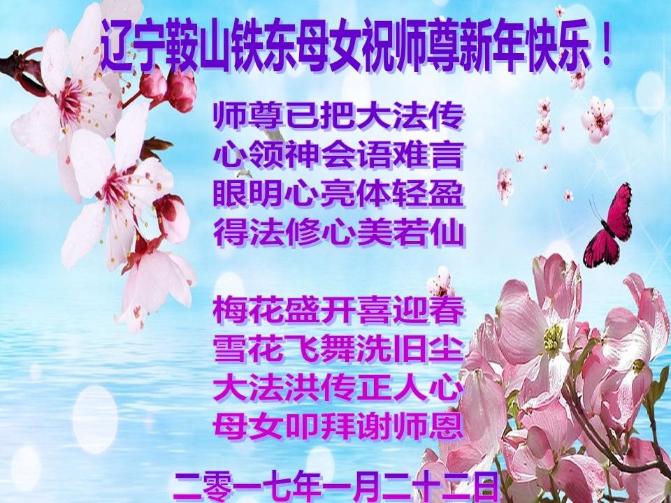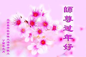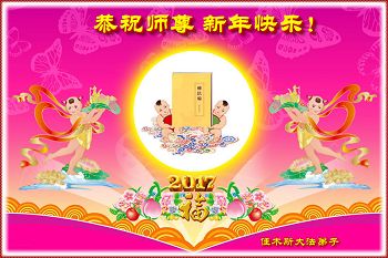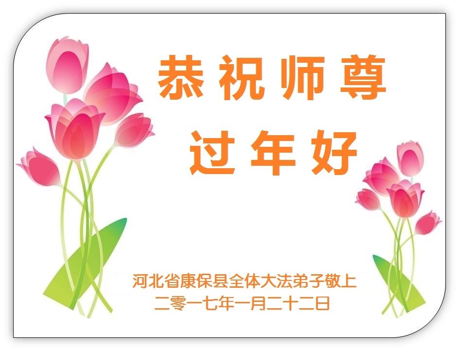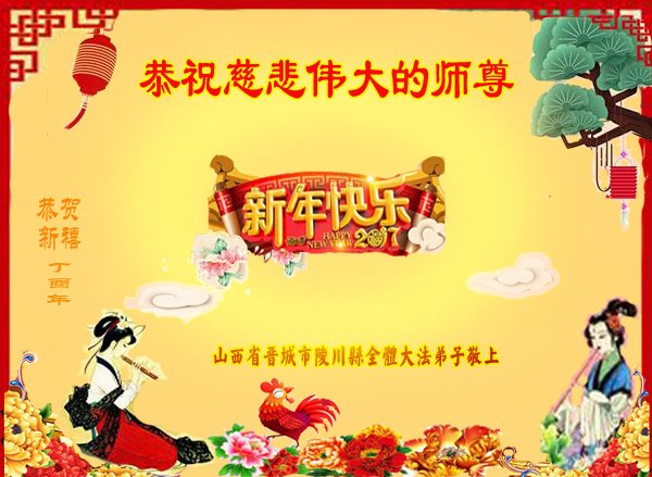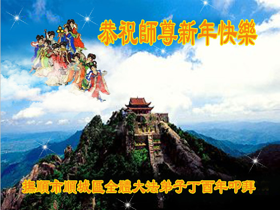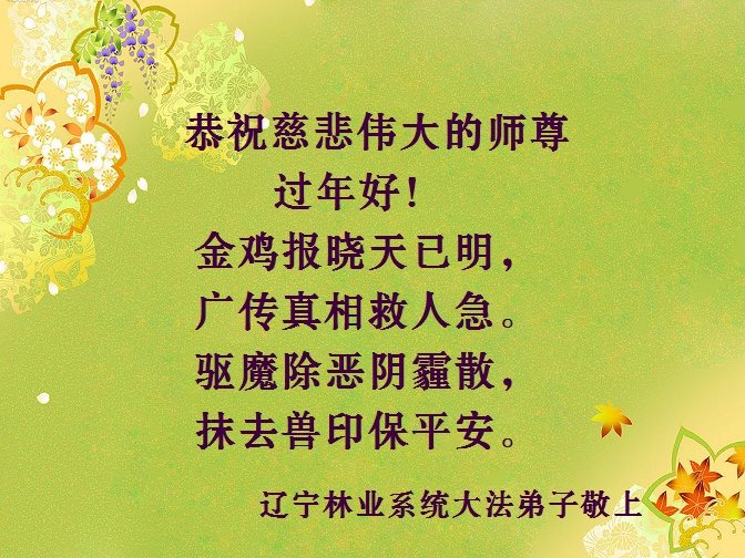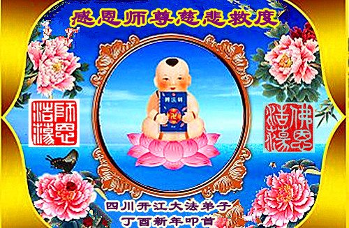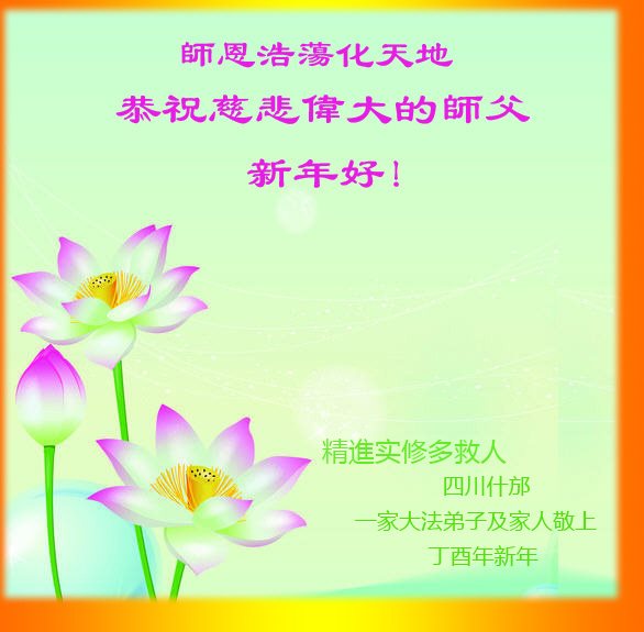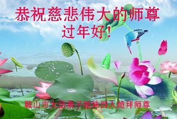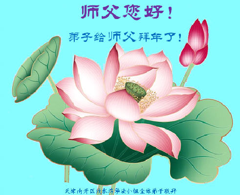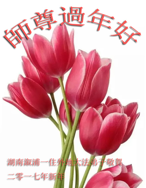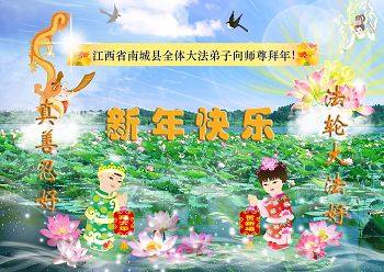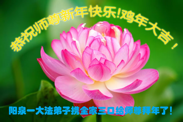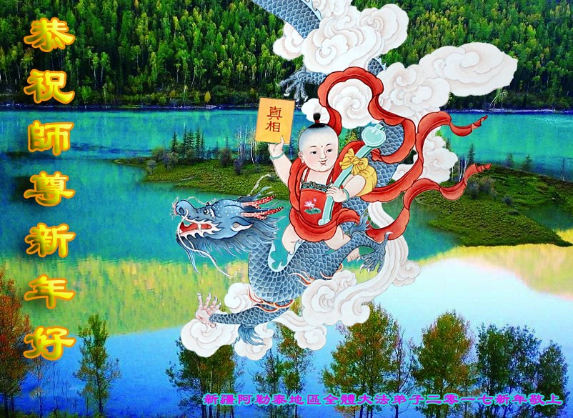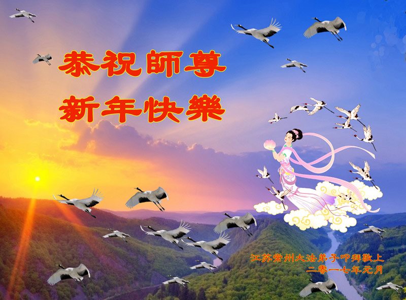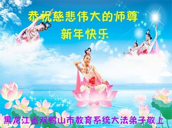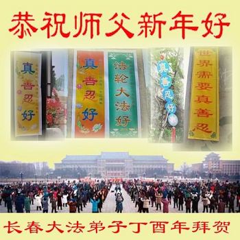 值此丁酉年新年之际,来自四川遂宁、辽宁抚顺、吉林长春、山东省威海、河北石家庄、吉林德惠、四川成都、山东招远、辽宁鞍山、湖北武汉、吉林舒兰、辽宁义县、重庆开州、湖北天门、胜利油田等七省十五地的资料点的大法弟子给慈悲伟大的李洪志师尊拜年!