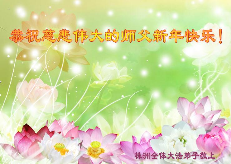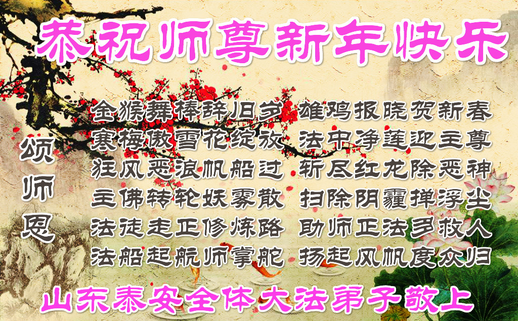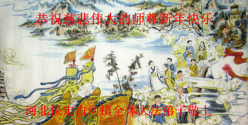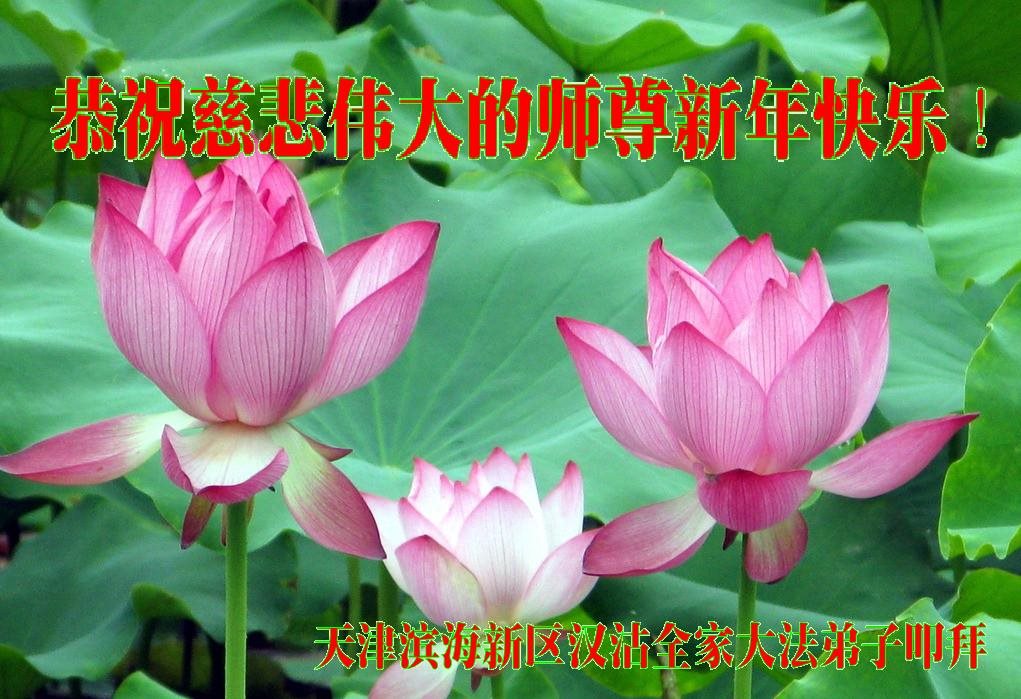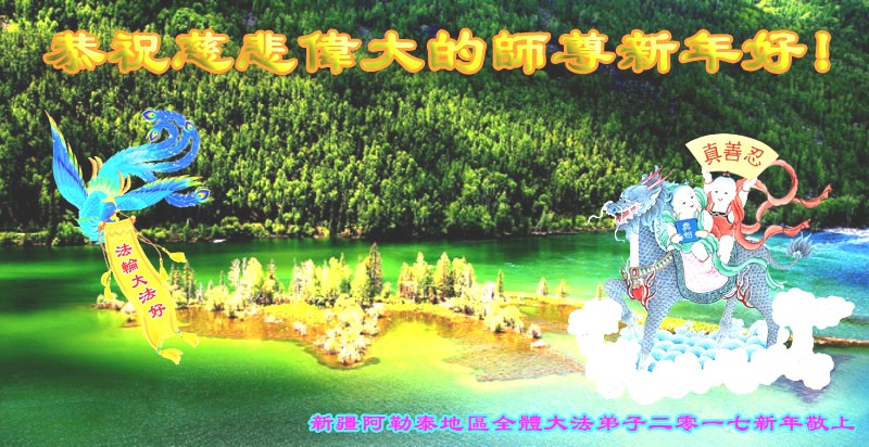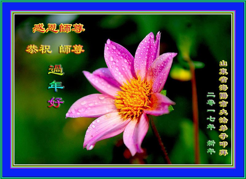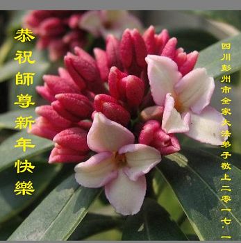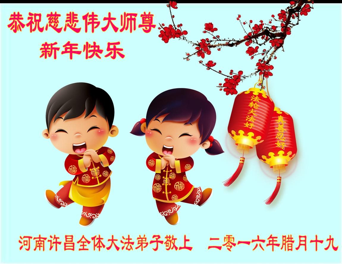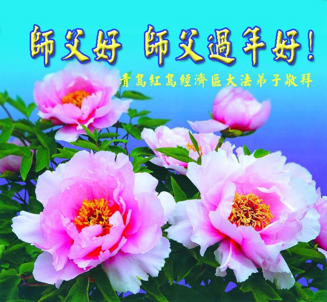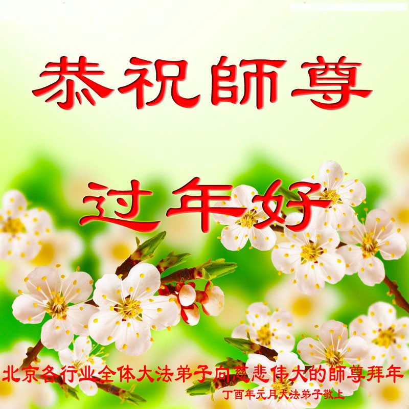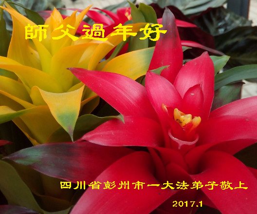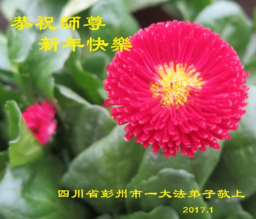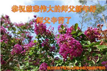 值此丁酉年新年之际,来自四川遂宁、辽宁抚顺、吉林长春、山东省威海、河北石家庄、吉林德惠、四川成都、山东招远、辽宁鞍山、湖北武汉、吉林舒兰、辽宁义县、重庆开州、湖北天门、胜利油田等七省十五地的资料点的大法弟子给慈悲伟大的李洪志师尊拜年!