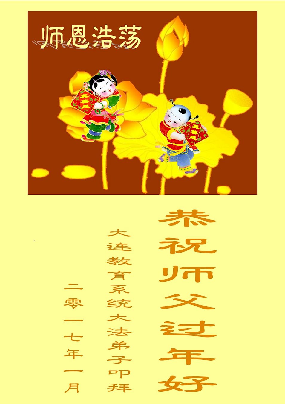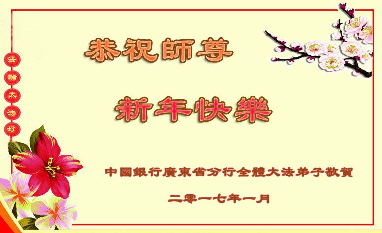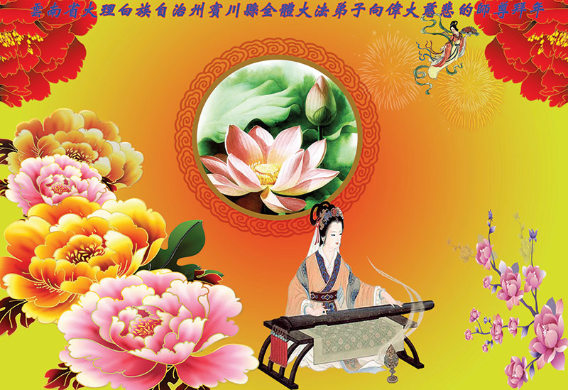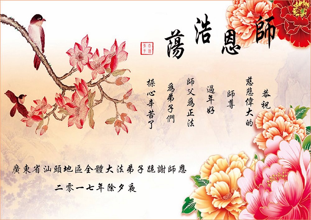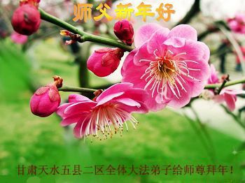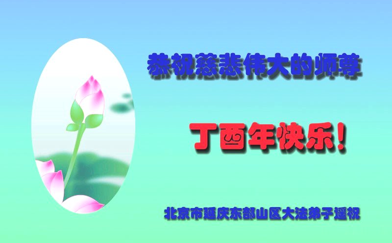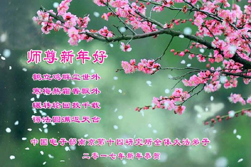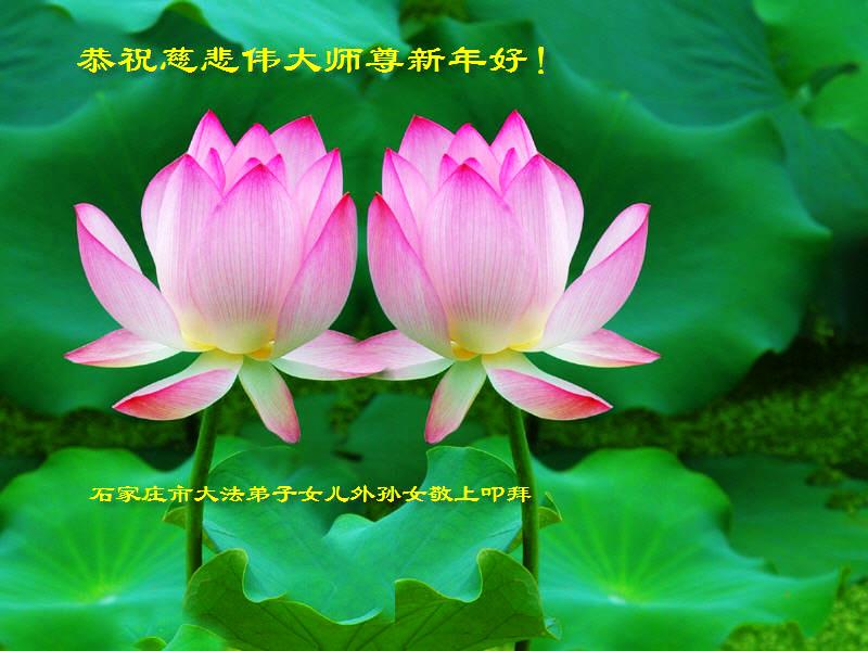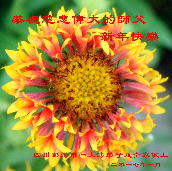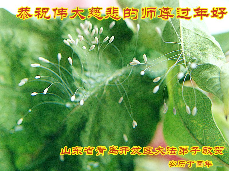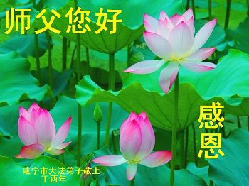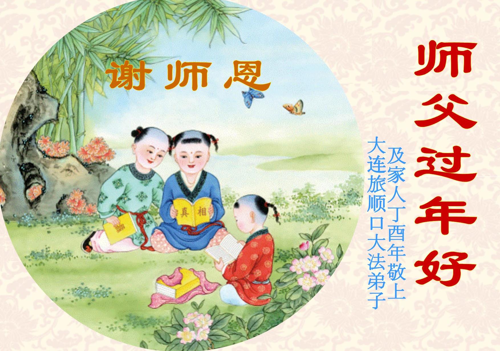 值此丁酉年新年之际,来自四川遂宁、辽宁抚顺、吉林长春、山东省威海、河北石家庄、吉林德惠、四川成都、山东招远、辽宁鞍山、湖北武汉、吉林舒兰、辽宁义县、重庆开州、湖北天门、胜利油田等七省十五地的资料点的大法弟子给慈悲伟大的李洪志师尊拜年!