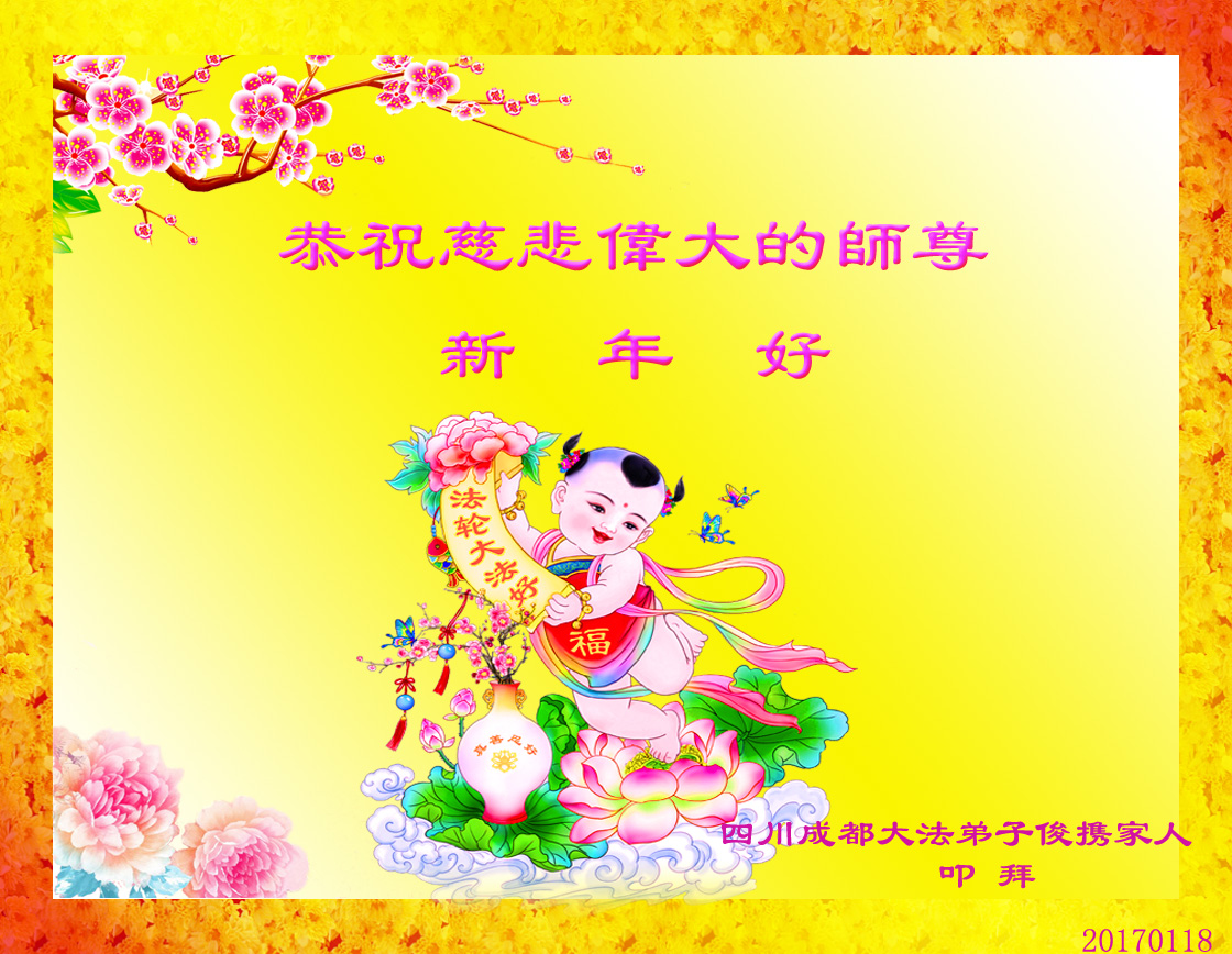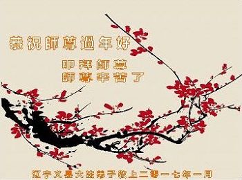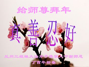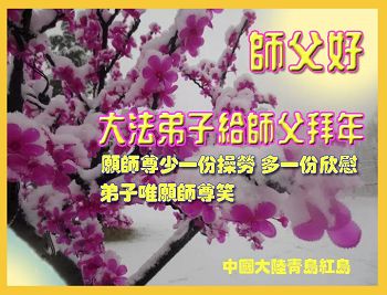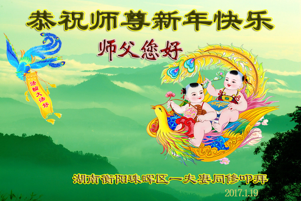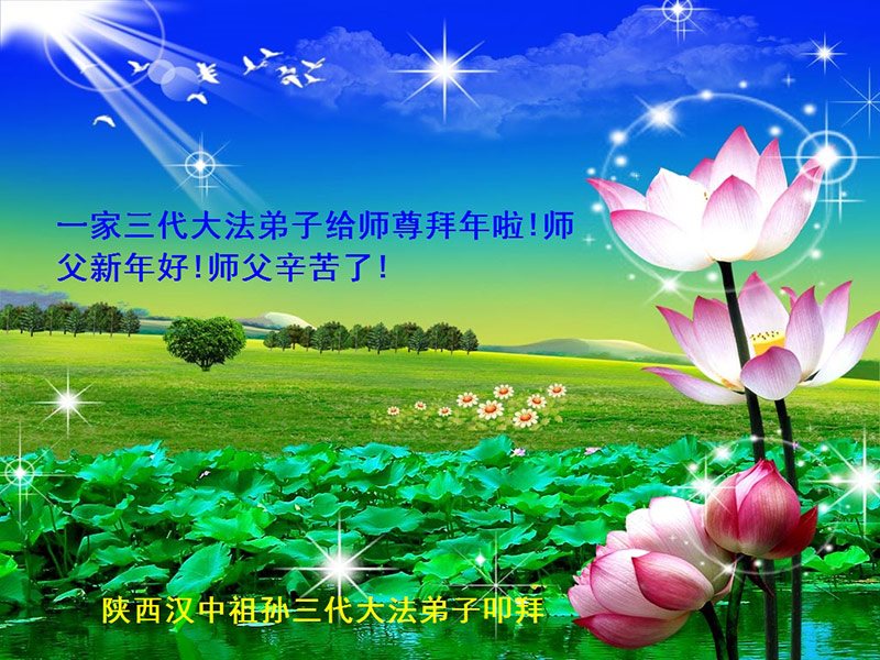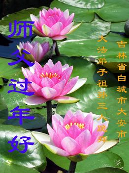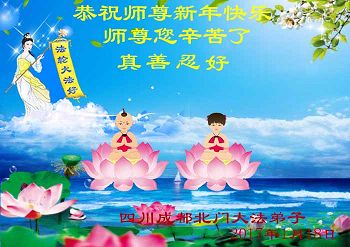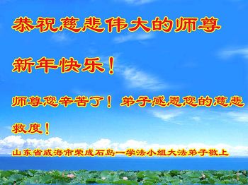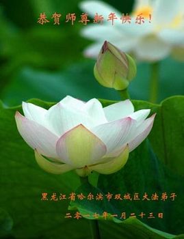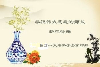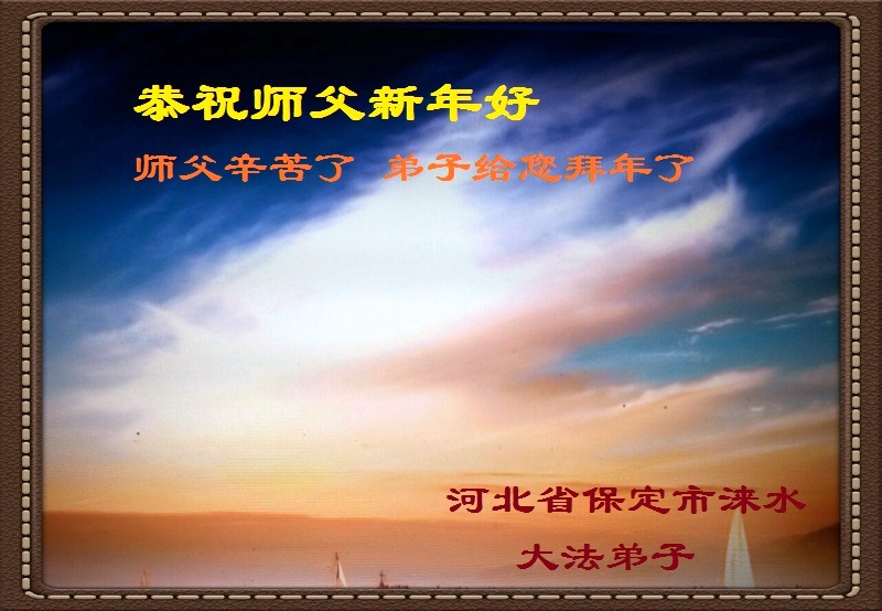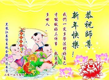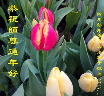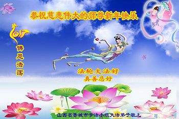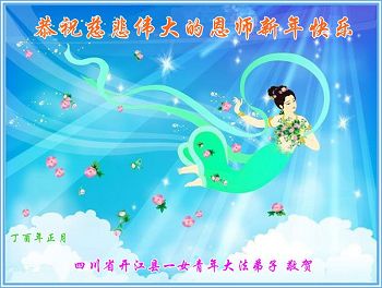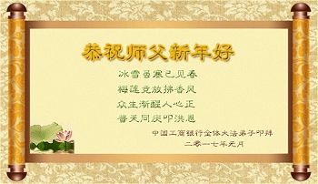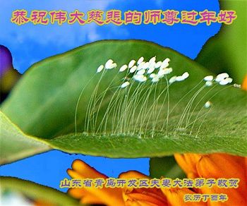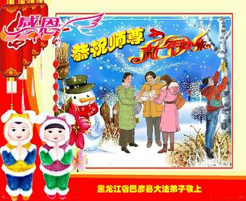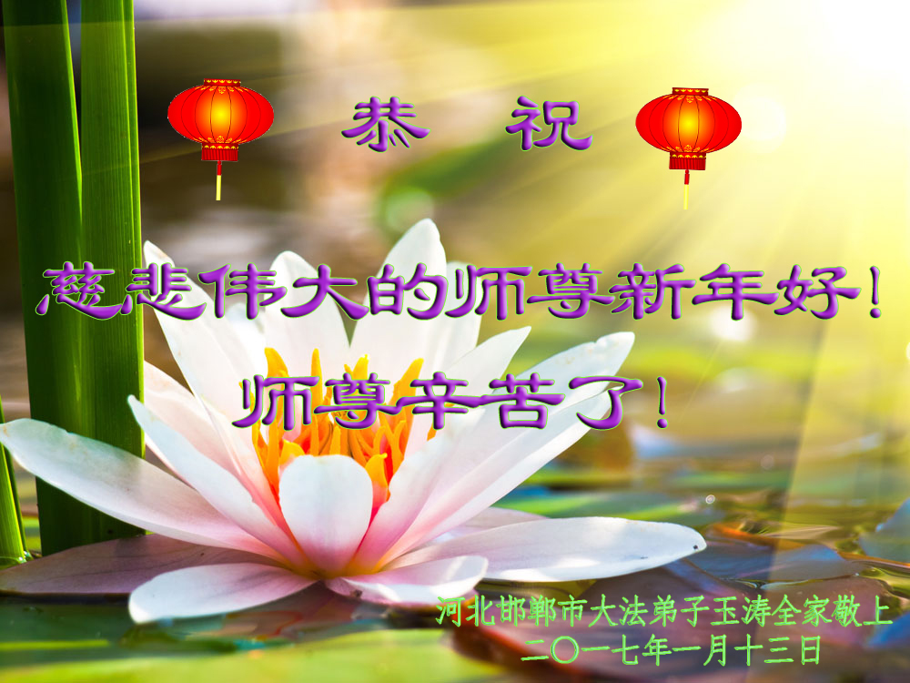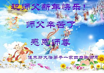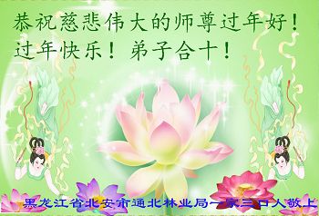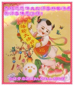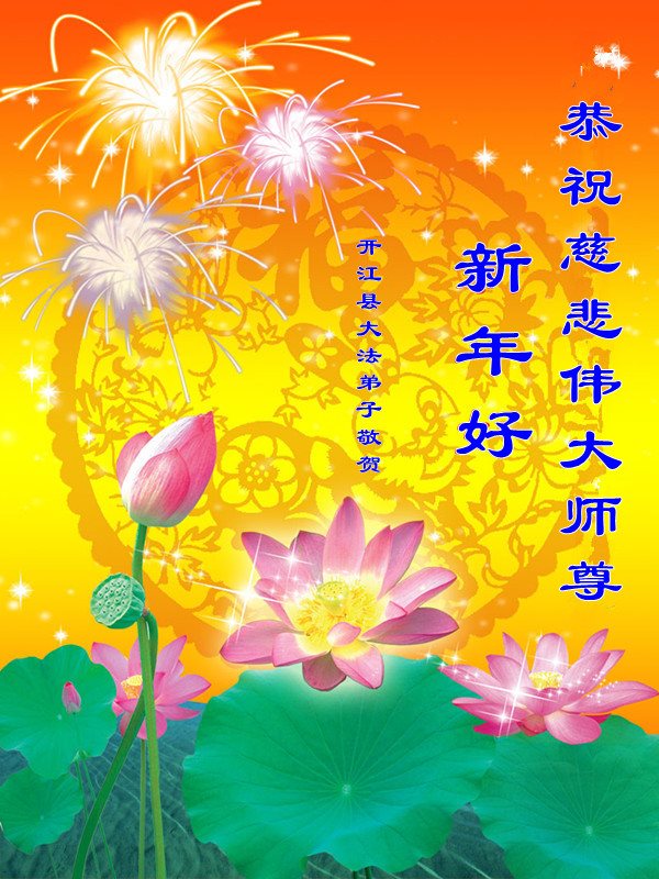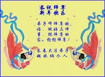 “要感谢师父的太多太多了,师父把大法传给我们,把我以前不正的行为归正,身心受益无法用言语答谢,内心说:师父谢谢您,师父新年好。”