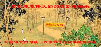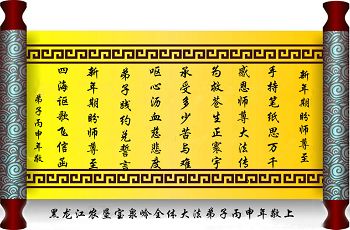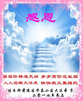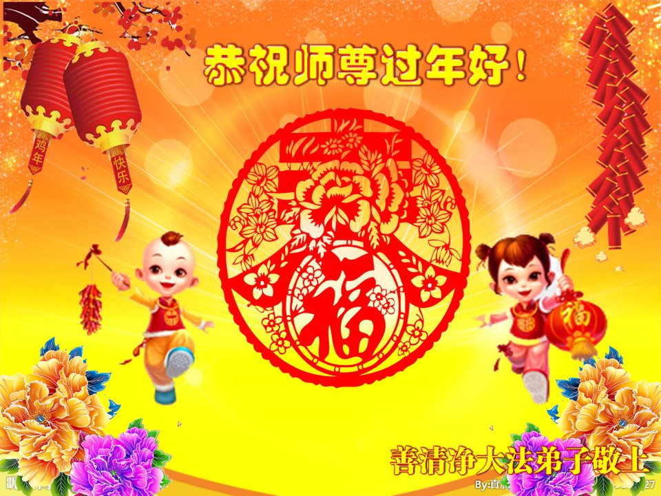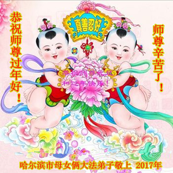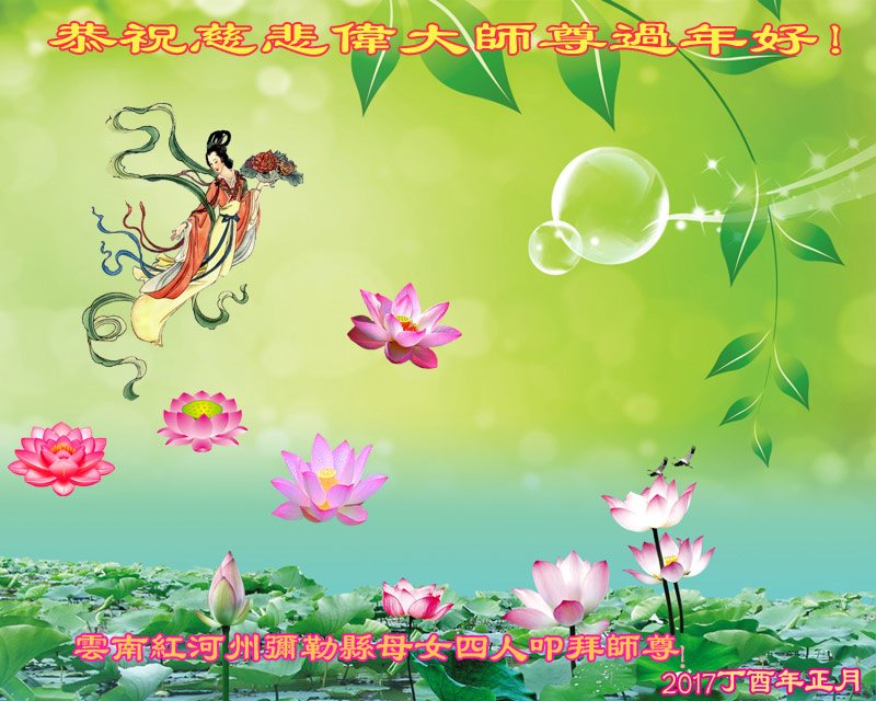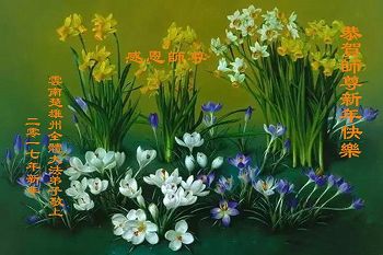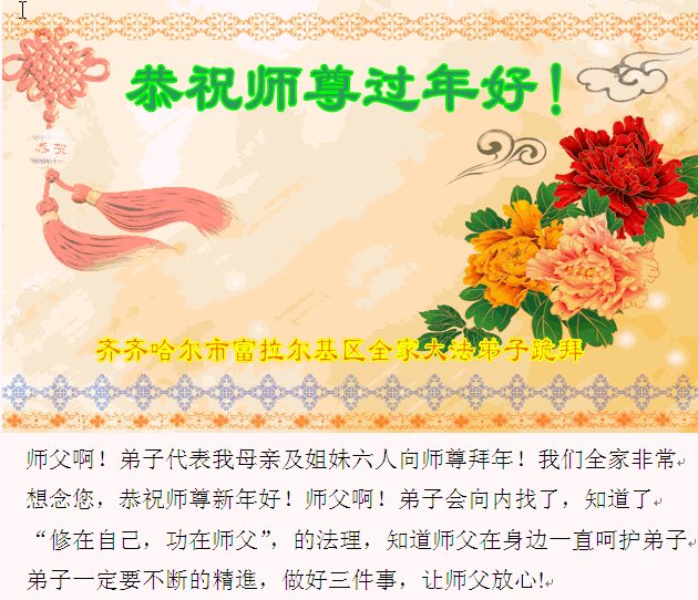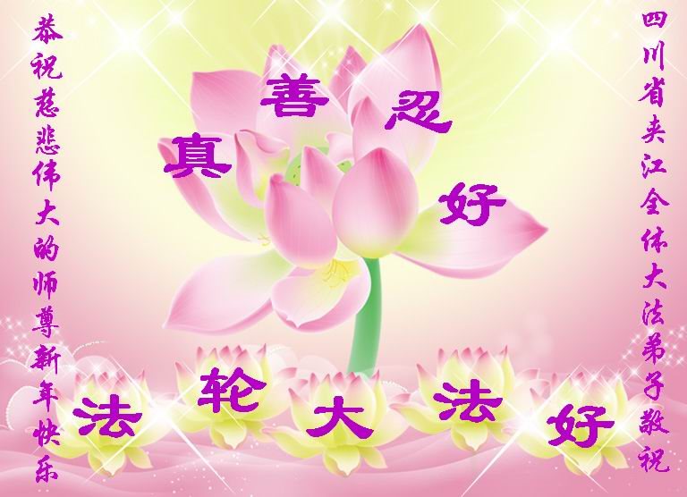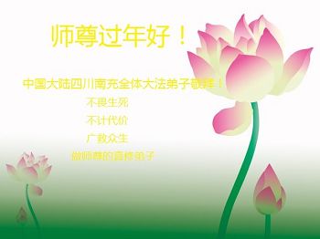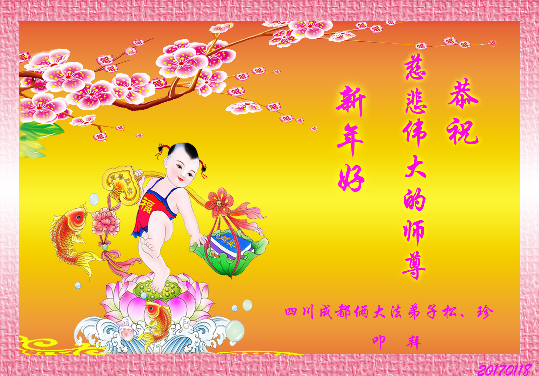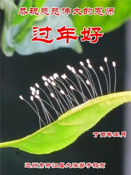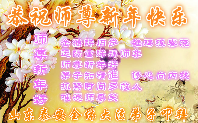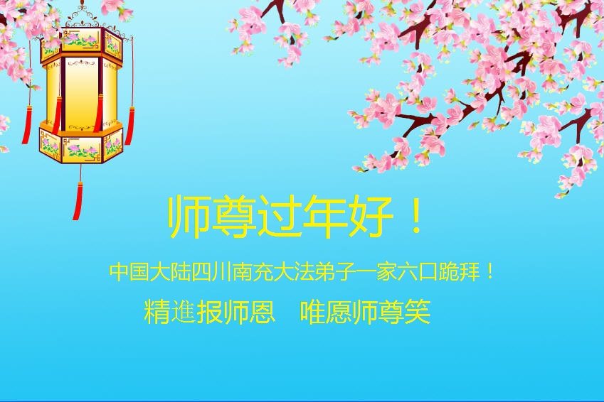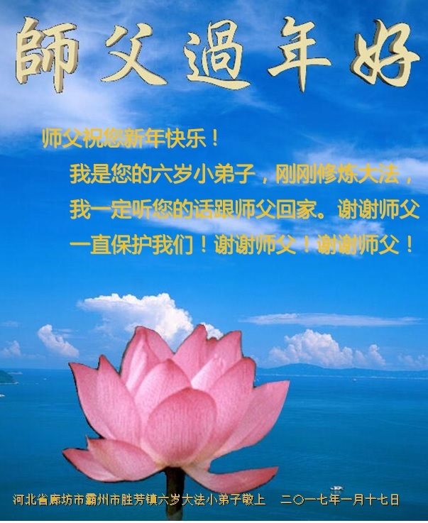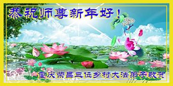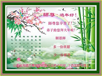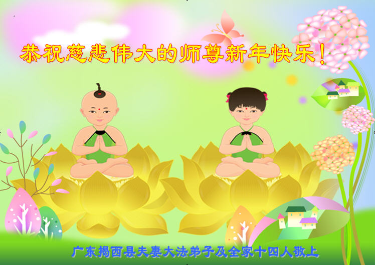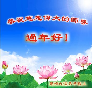 “要感谢师父的太多太多了,师父把大法传给我们,把我以前不正的行为归正,身心受益无法用言语答谢,内心说:师父谢谢您,师父新年好。”