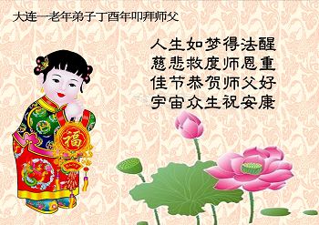 师父您好:弟子值此丁酉新年之际给慈悲伟大的师父拜年:师父过年好!您辛苦了!恭祝师父新年快乐!