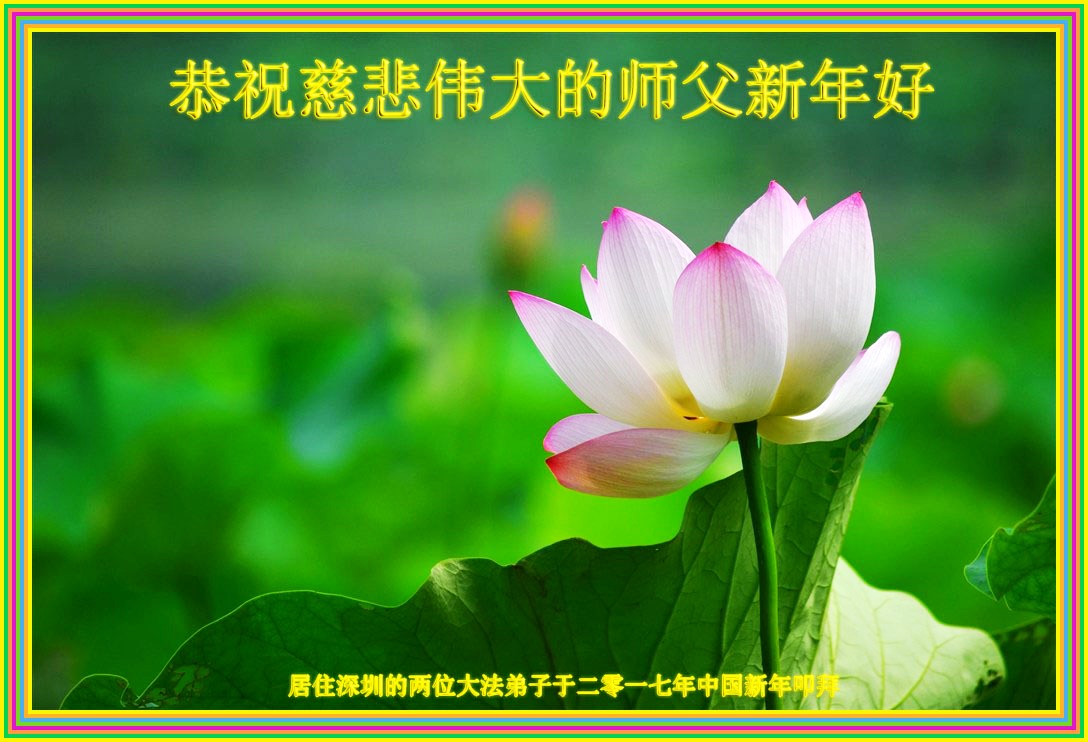“感谢师父,祝师父新年快乐。”她说:“感谢师父帮助我成长,指导我让我有一个很明确的方向,在茫茫人海中不迷失自己,每次面对困难考验时总感觉师父就在身边,一直在教导我、帮助我度过难关。我很困难时多学法就没事了。我要更精进,以报师恩。”
