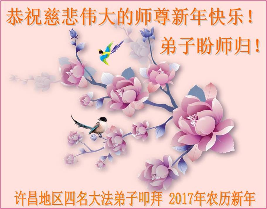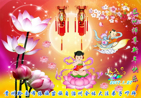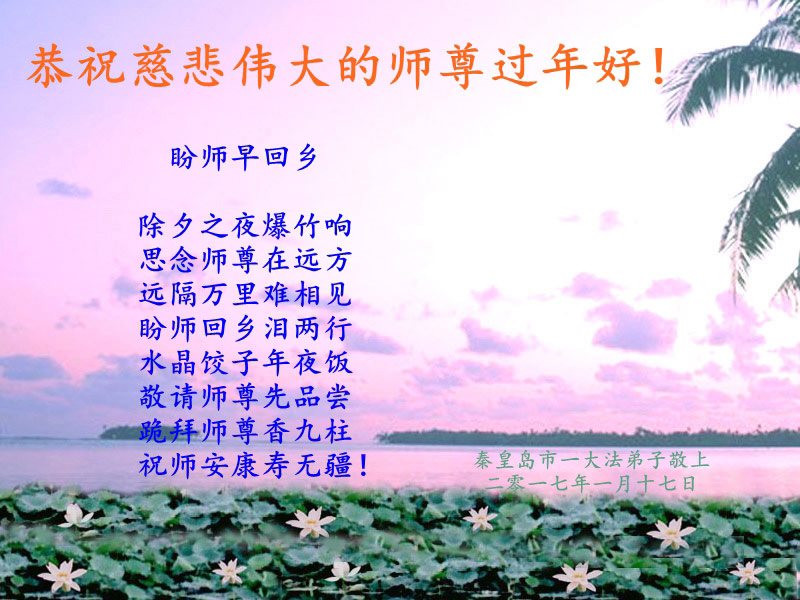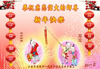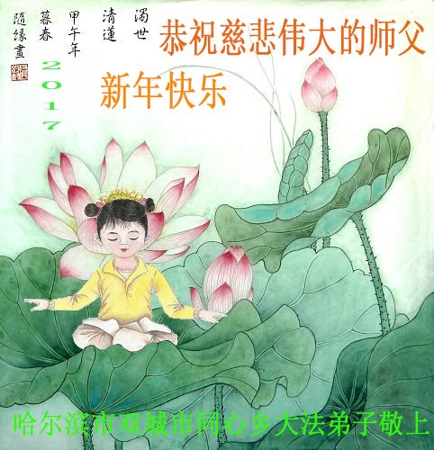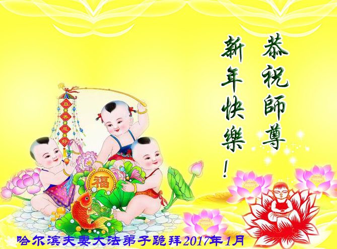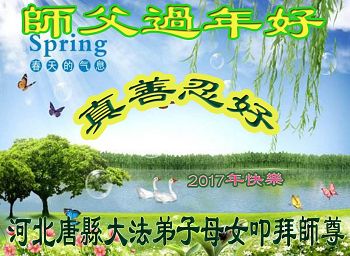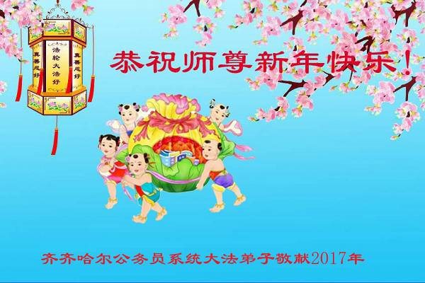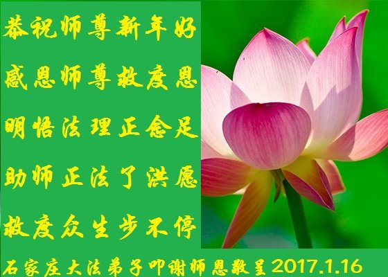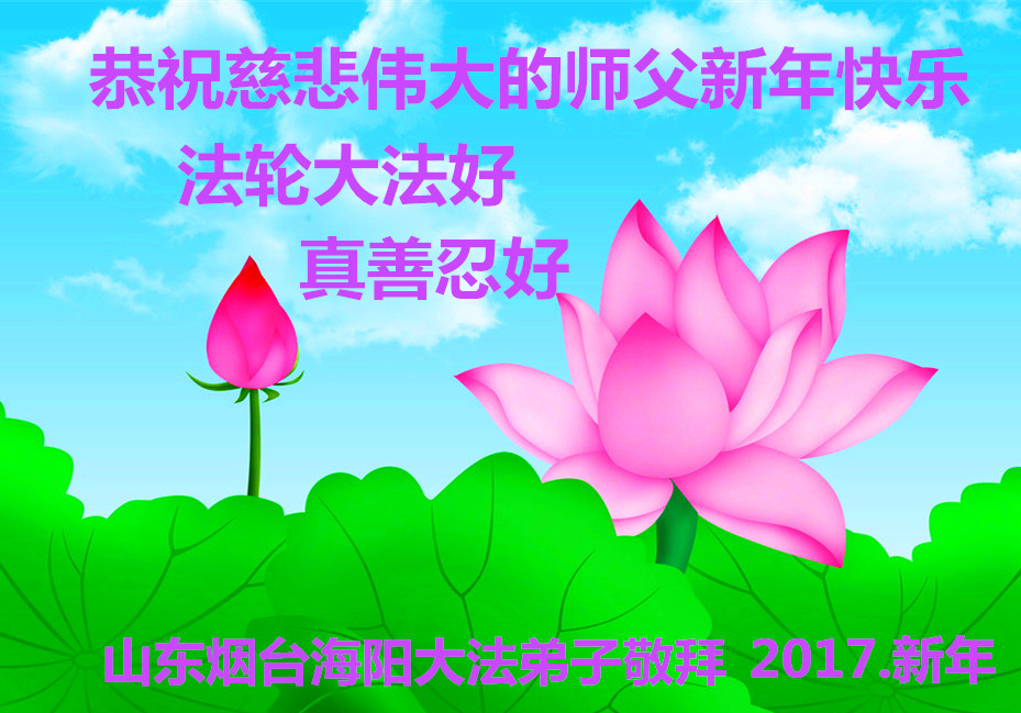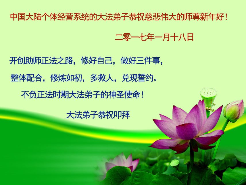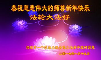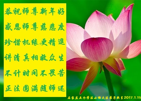 这是吉林省乾安县一学法小组大法弟子们在恭祝师尊2017年新年快乐的贺词,发自内心的表达大法修炼的美好。