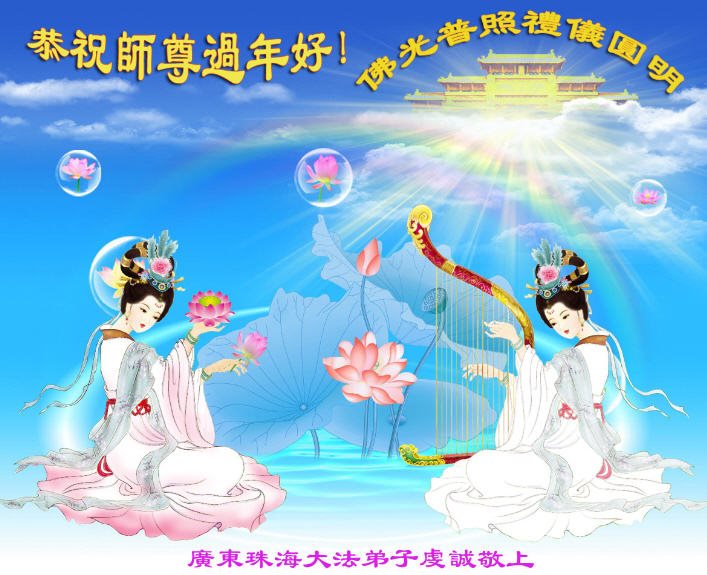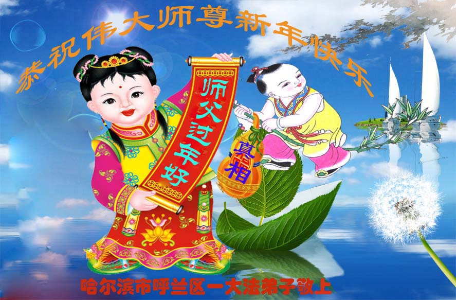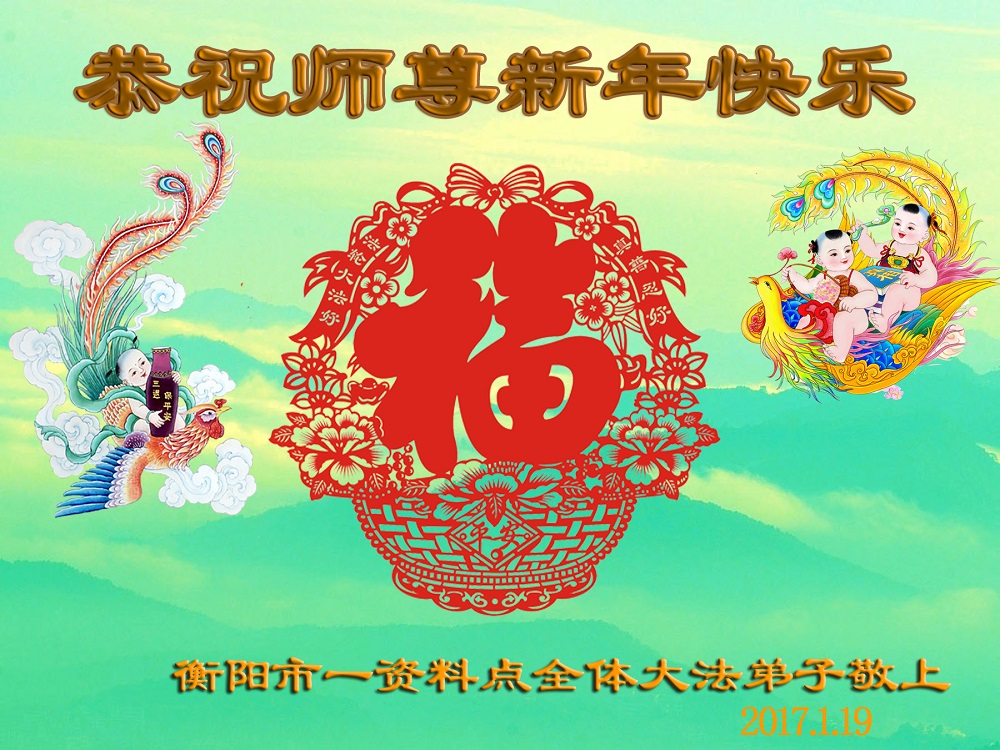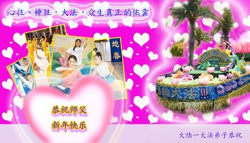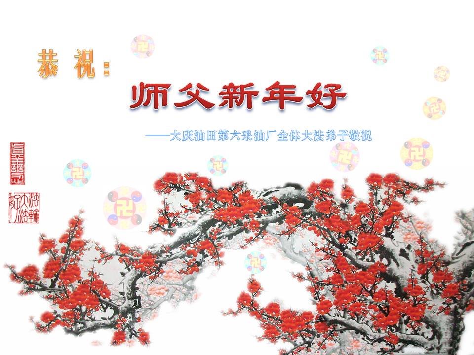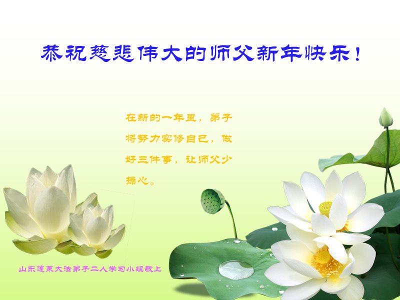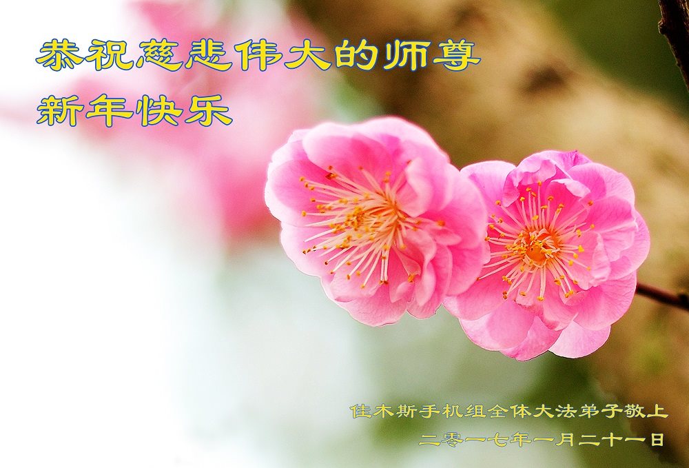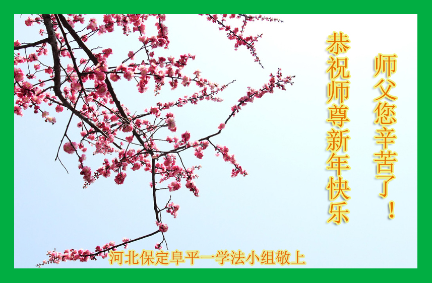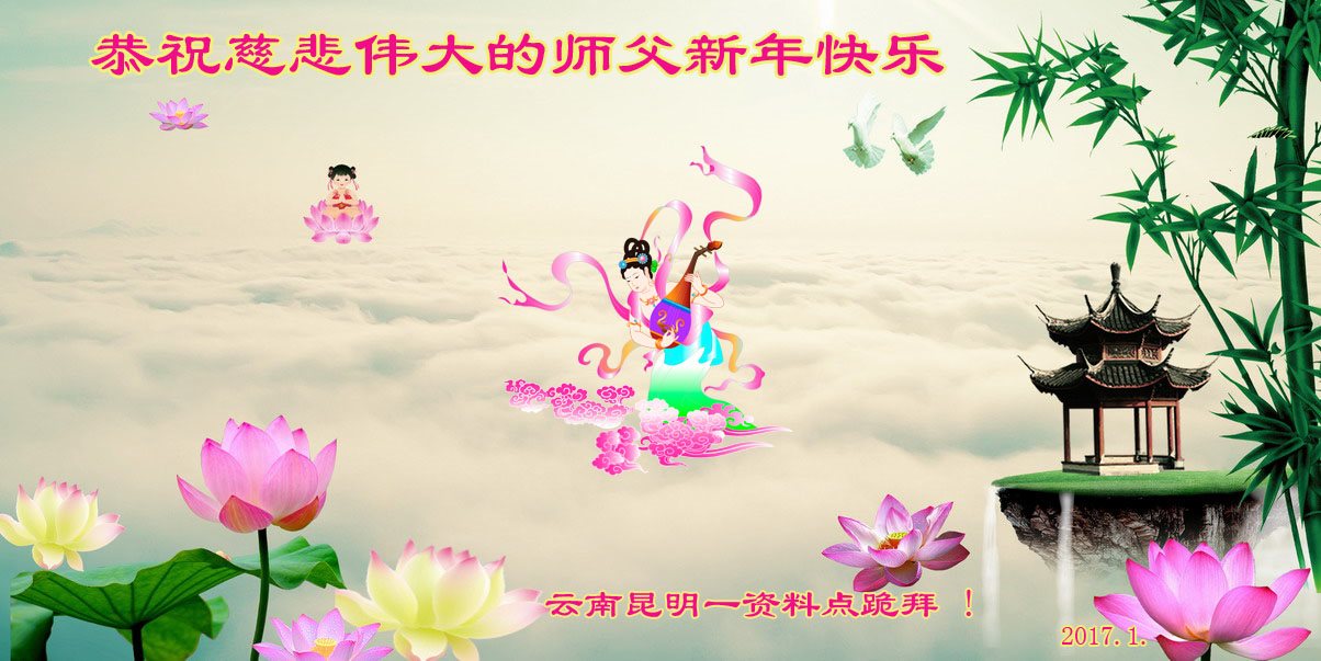 师父新年好!在师父的慈悲看护下,我们的资料点一直在发挥应有的作用,我们知道,我们能做好的每一件事情都是在师父的慈悲看护下完成的。对师父崇敬的心是用人类最美好的语言也无法表达完整的。在此新年到来之际,我们全体大法弟子用修炼人最纯净的心向师父问好!祝愿我们慈悲伟大的师父新年快乐!