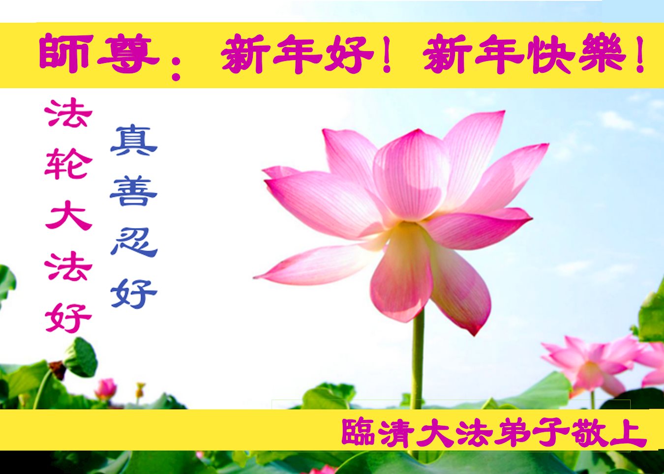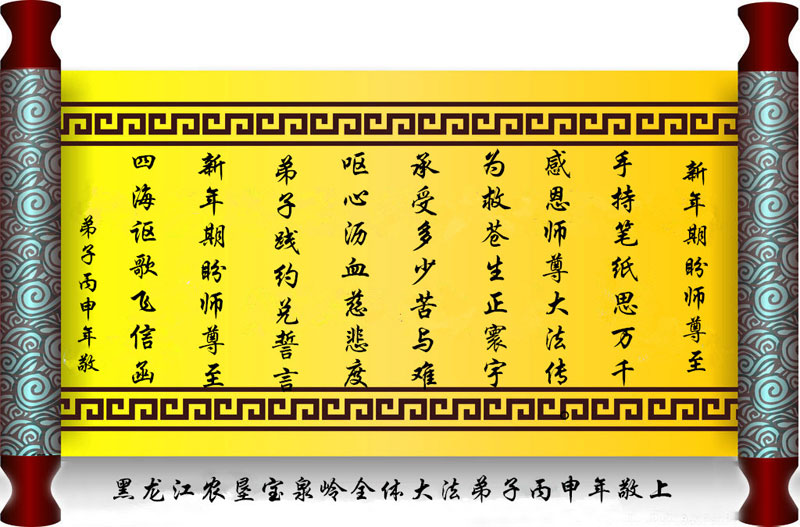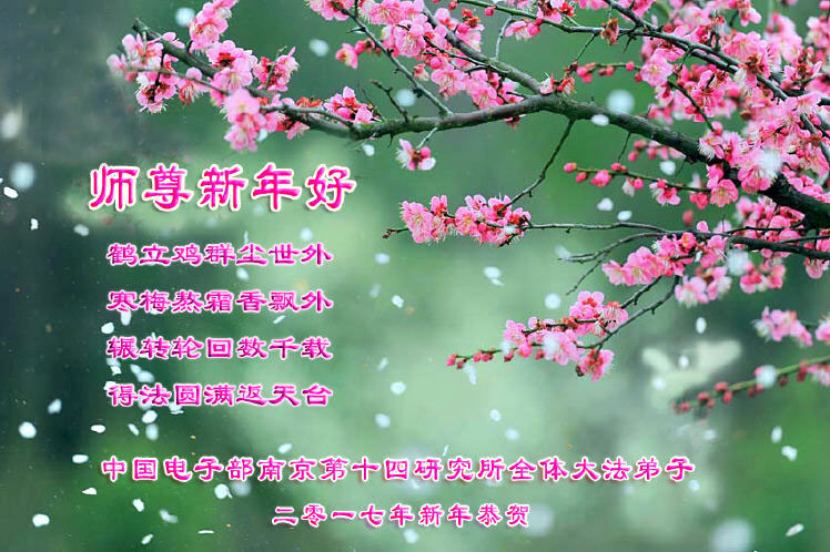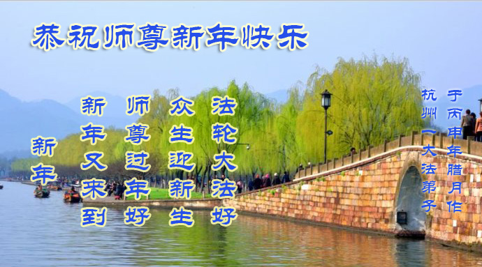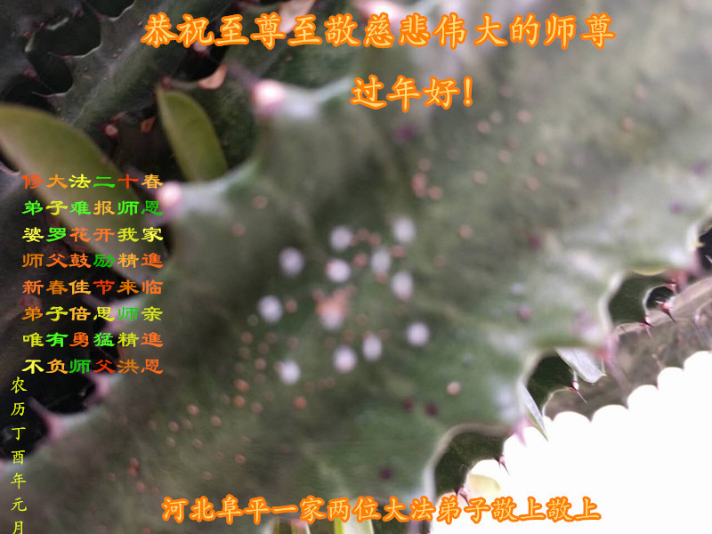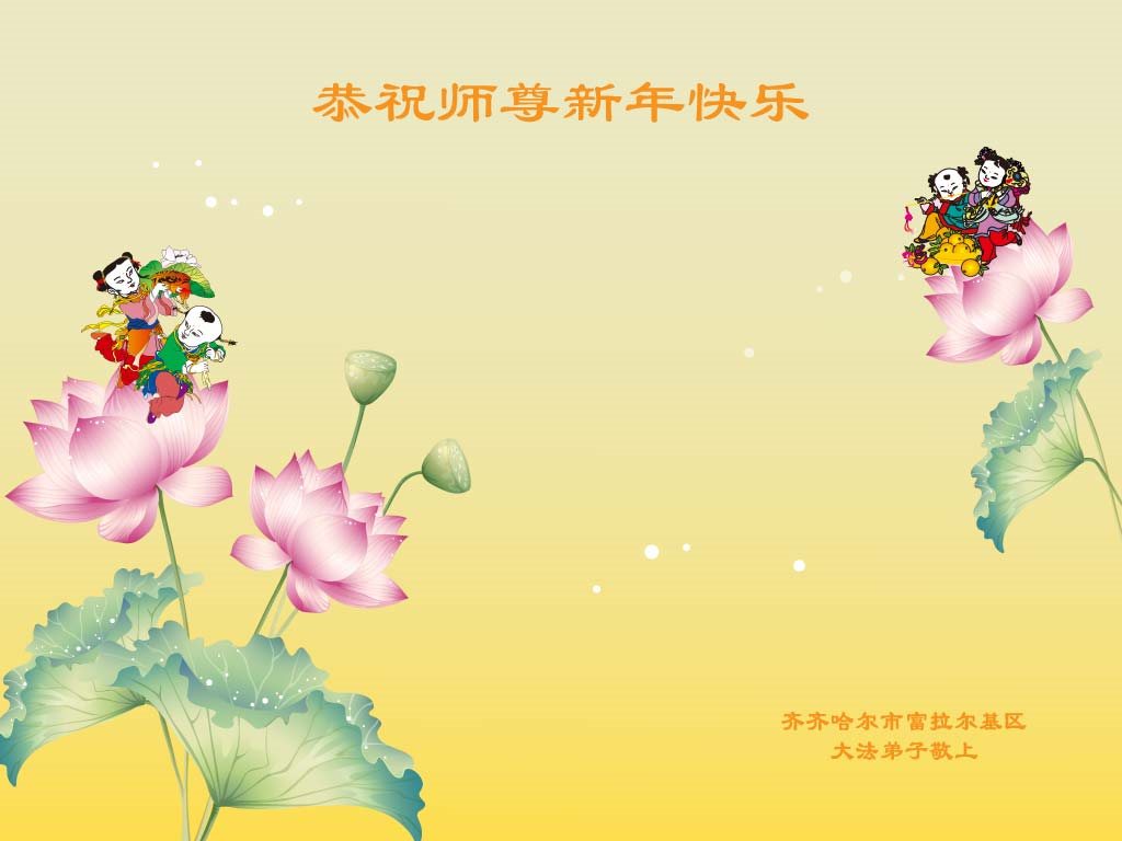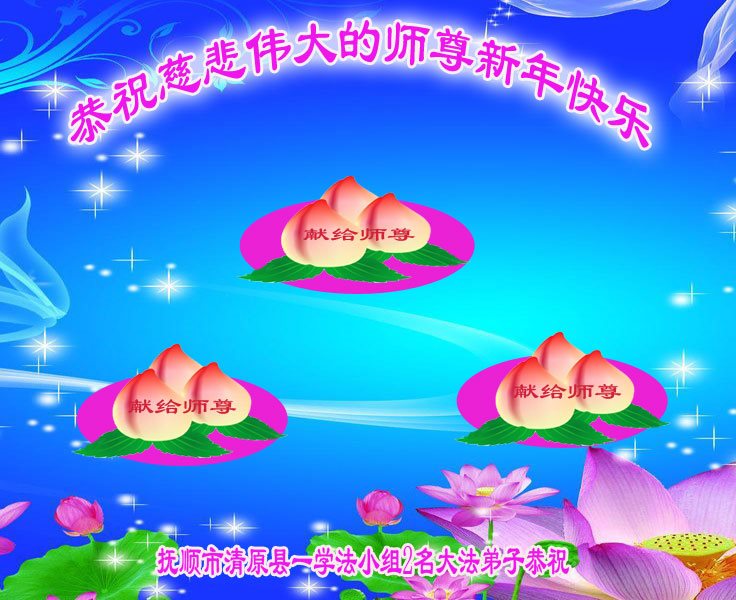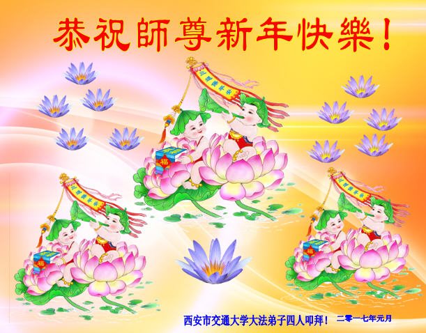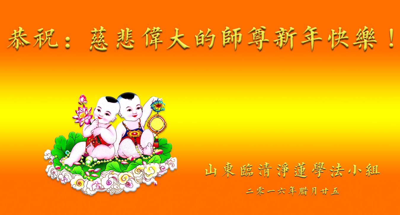 师父新年好!在师父的慈悲看护下,我们的资料点一直在发挥应有的作用,我们知道,我们能做好的每一件事情都是在师父的慈悲看护下完成的。对师父崇敬的心是用人类最美好的语言也无法表达完整的。在此新年到来之际,我们全体大法弟子用修炼人最纯净的心向师父问好!祝愿我们慈悲伟大的师父新年快乐!