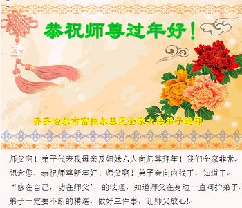 吉林省长春市德惠资料点大法弟子向师父拜贺大年